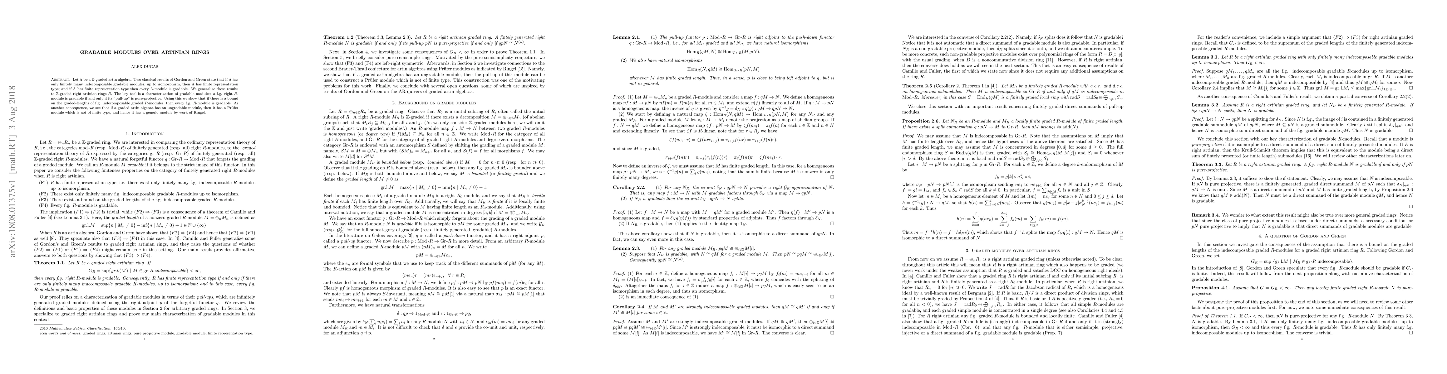 Let $\Lambda$ be a $\mathbb{Z}$-graded artin algebra. Two classical results of Gordon and Green state that if $\Lambda$ has only finitely many indecomposable gradable modules, up to isomorphism, then $\Lambda$ has finite representation type, and if $\Lambda$ has finite representation type then every $\Lambda$-module is gradable. We generalize these results to $\mathbb{Z}$-graded right artinian rings $R$. The key tool is a characterization of gradable modules: a f.g. right $R$-module is gradable if and only if its "pull-up" is pure-projective. Using this we show that if there is a bound on the graded-lengths of f.g. indecomposable graded $R$-modules, then every f.g. $R$-module is gradable. As another consequence, we see that if a graded artin algebra has an ungradable module, then it has a Pr\"ufer module which is not of finite type, and hence it has a generic module by work of Ringel