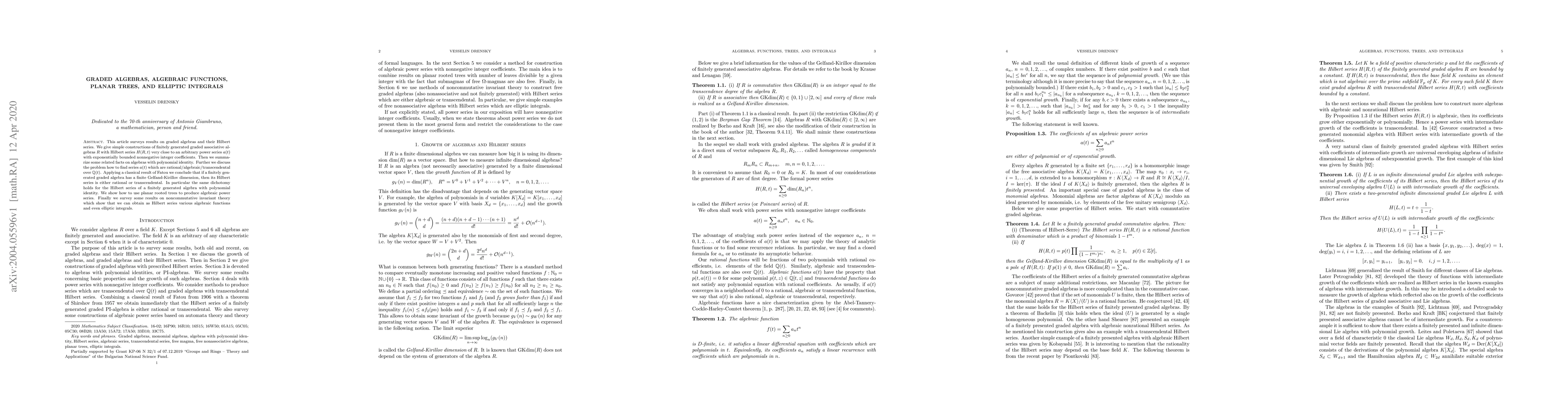 This article surveys results on graded algebras and their Hilbert series. We give simple constructions of finitely generated graded associative algebras $R$ with Hilbert series $H(R,t)$ very close to an arbitrary power series $a(t)$ with exponentially bounded nonnegative integer coefficients. Then we summarize some related facts on algebras with polynomial identity. Further we discuss the problem how to find series $a(t)$ which are rational/algebraic/transcendental over ${\mathbb Q}(t)$. Applying a classical result of Fatou we conclude that if a finitely generated graded algebra has a finite Gelfand-Kirillov dimension, then its Hilbert series is either rational or transcendental. In particular the same dichotomy holds for the Hilbert series of a finitely generated algebra with polynomial identity. We show how to use planar rooted trees to produce algebraic power series. Finally we survey some results on noncommutative invariant theory which show that we can obtain as Hilbert series various algebraic functions and even elliptic integrals.