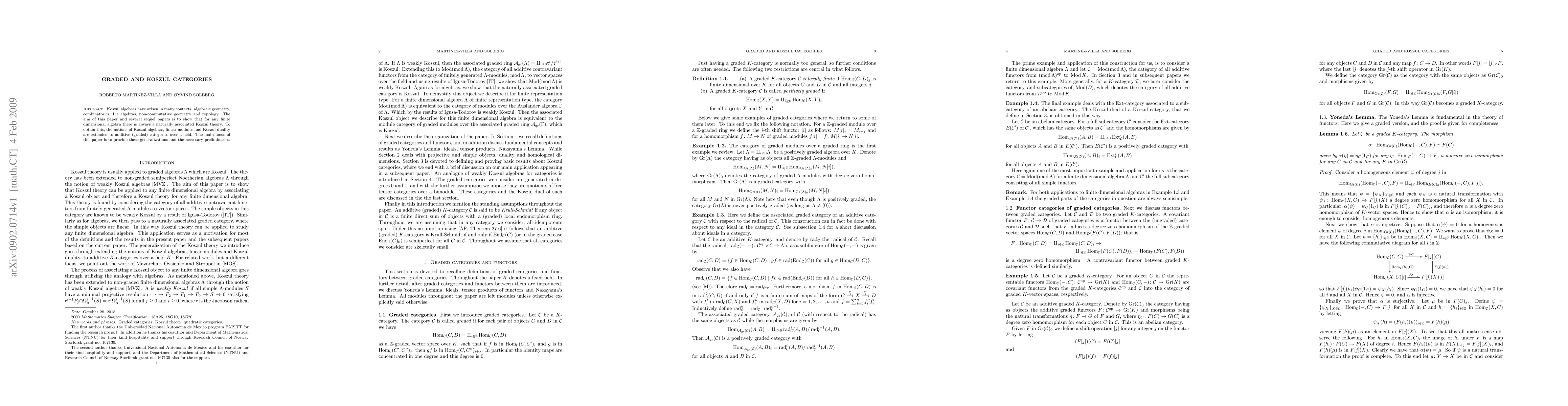 This paper extends the concepts of Koszul algebras and Koszul duality to graded and additive categories, providing foundational preliminaries for future explorations into the Koszul theory associated with any finite-dimensional algebra.