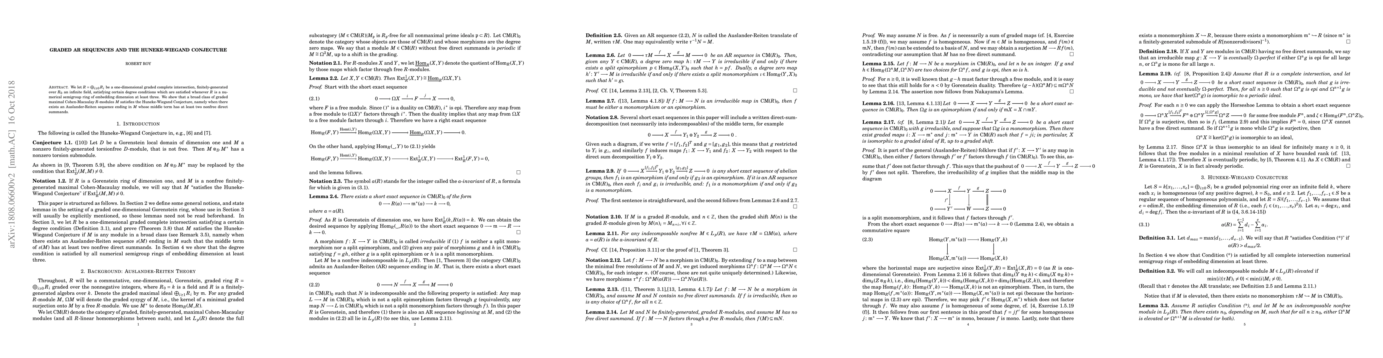 We let R be a one-dimensional graded complete intersection, satisfying certain degree conditions which are satisfied whenever R is a numerical semigroup ring of embedding dimension at least three. We show that a graded maximal Cohen-Macaulay R-module M satisfies the Huneke-Wiegand Conjecture provided there exists an Auslander-Reiten sequence ending in M whose middle term has at least two nonfree direct summands.