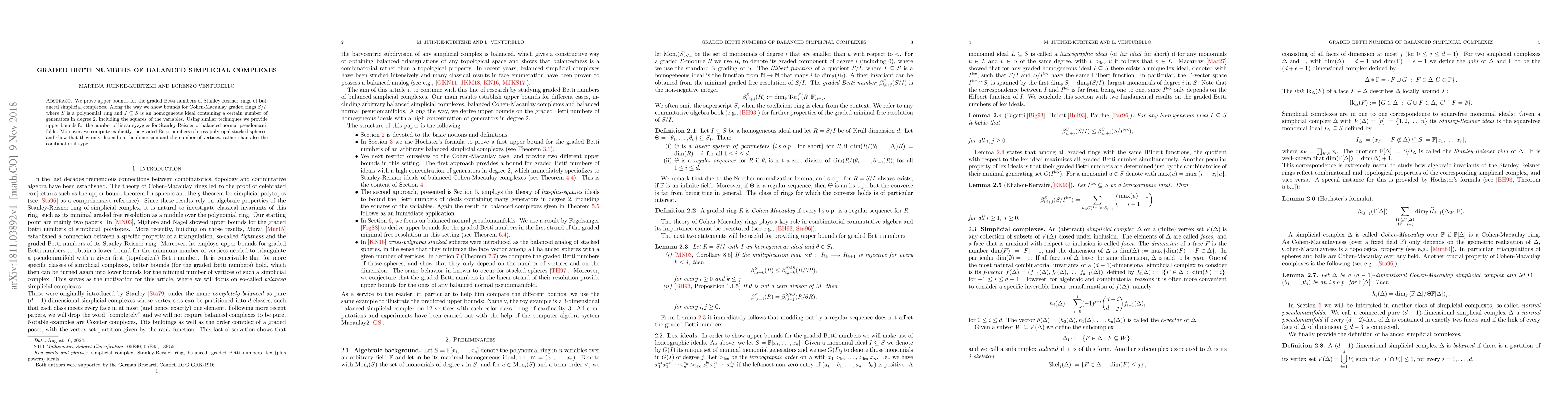 This paper establishes upper bounds for the graded Betti numbers of Stanley-Reisner rings associated with balanced simplicial complexes, demonstrating results for Cohen-Macaulay graded rings and providing explicit calculations for cross-polytopal stacked spheres, revealing their Betti numbers depend only on dimension and vertex count.