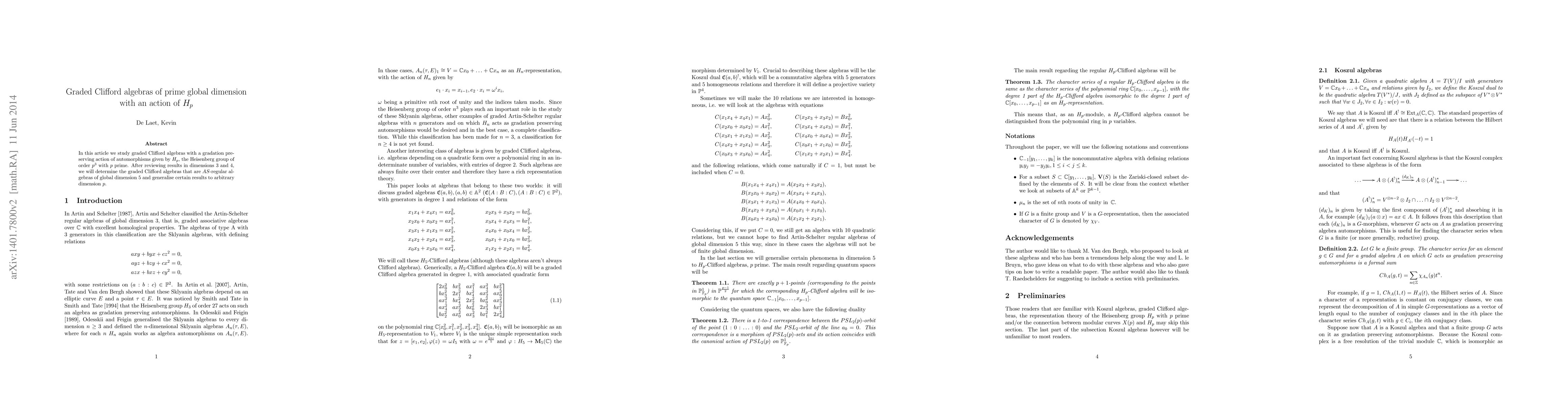This paper investigates graded Clifford algebras with an action from the Heisenberg group $H_p$, determining those that are AS-regular of global dimension 5 and establishing a correspondence between $\mathbb{P}^1_{\mathbb{F}_p}$ and the quantum space $\mathbb{C}_{-1}[x_0,\ldots,x_{p-1}]$.