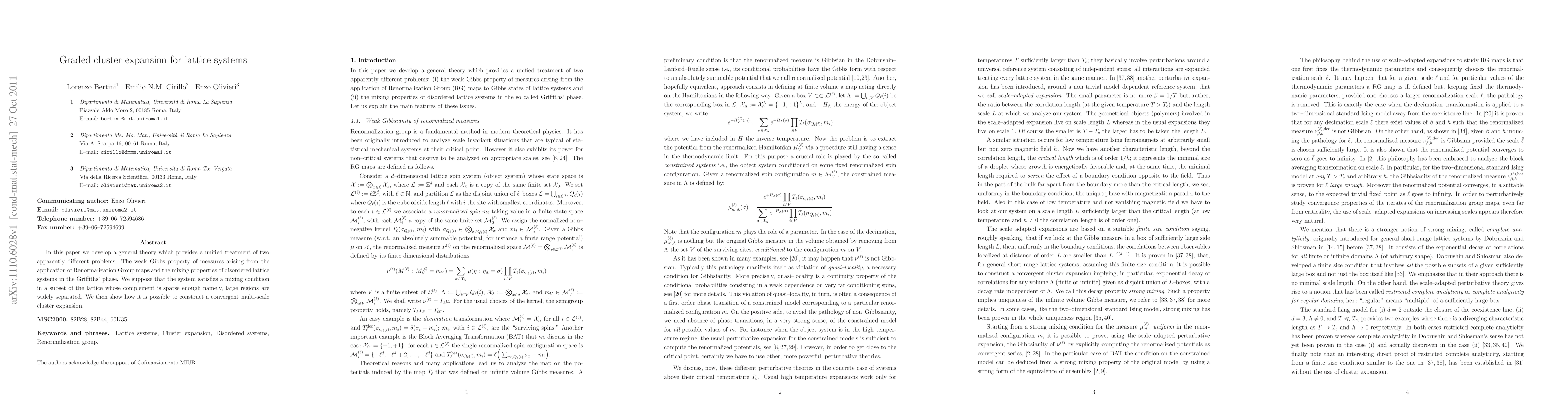 In this paper we develop a general theory which provides a unified treatment of two apparently different problems. The weak Gibbs property of measures arising from the application of Renormalization Group maps and the mixing properties of disordered lattice systems in the Griffiths' phase. We suppose that the system satisfies a mixing condition in a subset of the lattice whose complement is sparse enough namely, large regions are widely separated. We then show how it is possible to construct a convergent multi-scale cluster expansion.