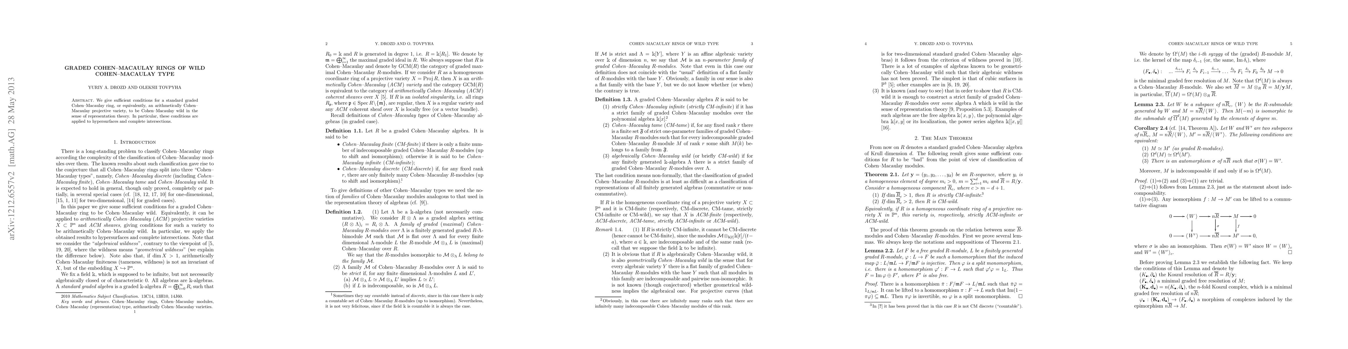 This paper provides sufficient conditions for standard graded Cohen-Macaulay rings to be Cohen-Macaulay wild in representation theory, and applies these conditions to hypersurfaces and complete intersections. The results enhance the understanding of these algebraic structures in projective varieties.