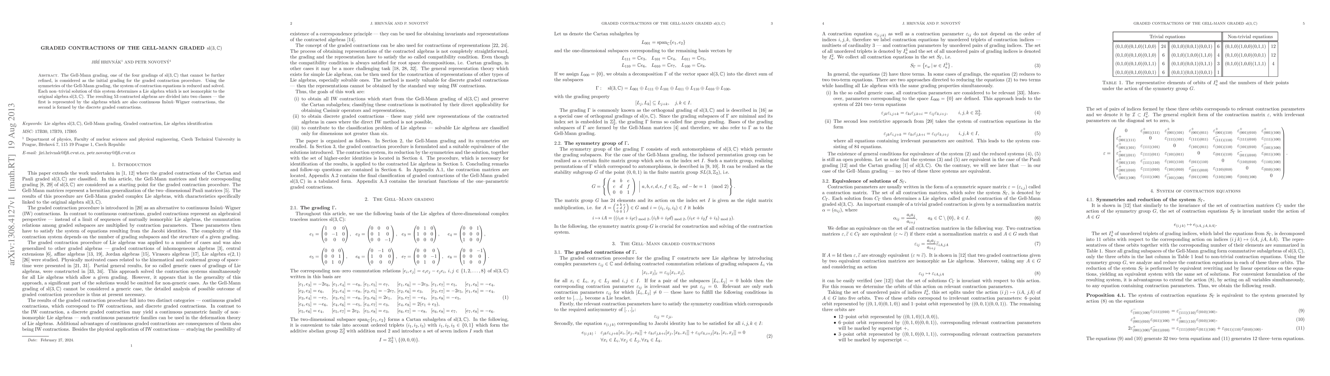 This paper explores the graded contractions of the Gell-Mann graded sl(3,C), solving the contraction equations to derive 53 non-isomorphic contracted Lie algebras. These are categorized into continuous Inonu-Wigner contractions and discrete graded contractions.