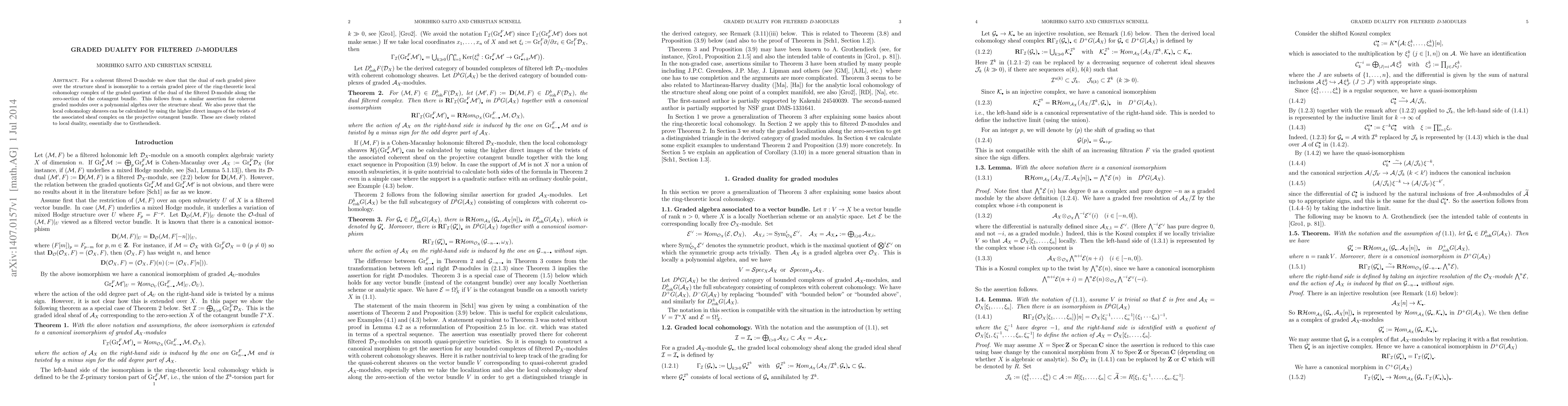 This paper establishes an isomorphism between the dual of each graded piece of a coherent filtered D-module and a certain graded piece of the local cohomology complex, proving connections to local duality and higher direct images on the projective cotangent bundle. The results build on a similar duality for coherent graded modules over polynomial algebras.