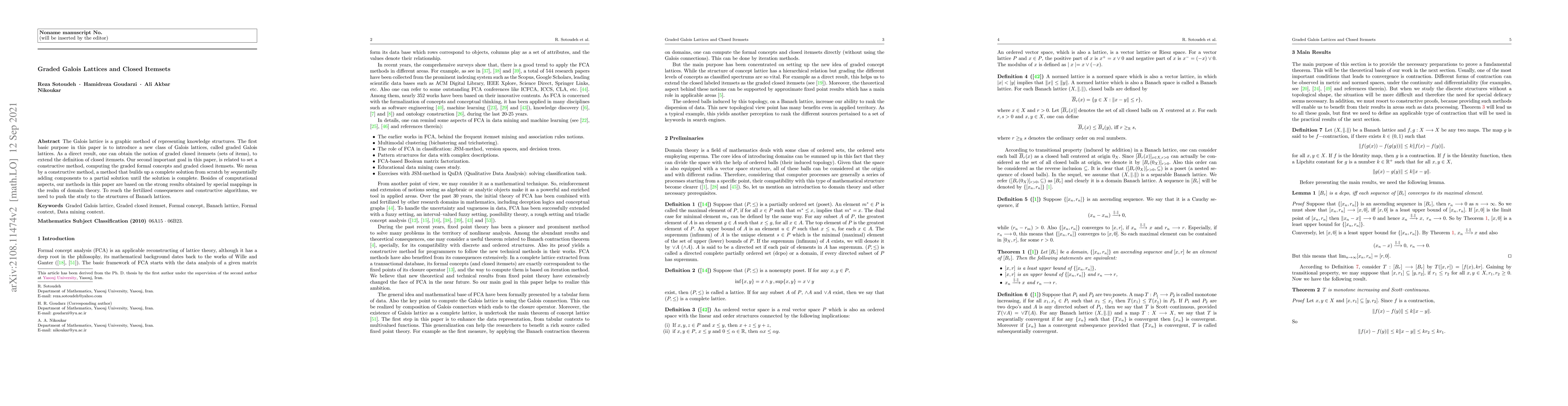 The Galois lattice is a graphic method of representing knowledge structures. The first basic purpose in this paper is to introduce a new class of Galois lattices, called graded Galois lattices. As a direct result, one can obtain the notion of graded closed itemsets (sets of items), to extend the definition of closed itemsets. Our second important goal in this paper, is related to set a constructive method, computing the graded formal concepts and graded closed itemsets. We mean by a constructive method, a method that builds up a complete solution from scratch by sequentially adding components to a partial solution until the solution is complete. Besides of computational aspects, our methods in this paper are based on the strong results obtained by special mappings in the realm of domain theory. To reach the fertilized consequences and constructive algorithms, we need to push the study to the structures of Banach lattices.