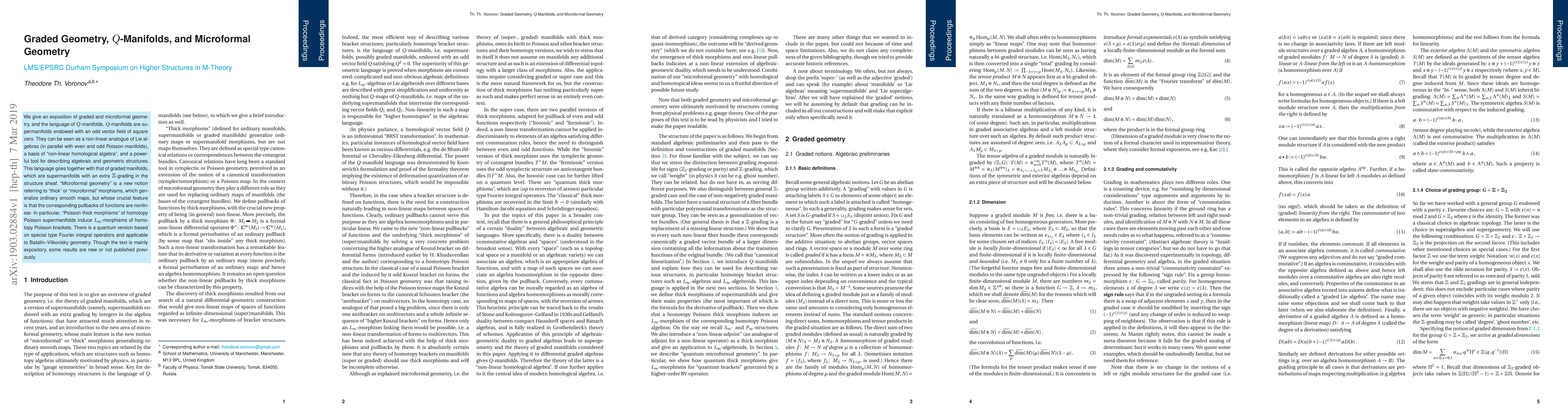 This paper explores graded and microformal geometry, introducing $Q$-manifolds—supermanifolds with an odd vector field of square zero—as non-linear analogues of Lie algebras and foundational tools for non-linear homological algebra. It also discusses microformal geometry, focusing on "thick" morphisms whose pullbacks are nonlinear, and presents a quantum version linked to Fourier integral operators.