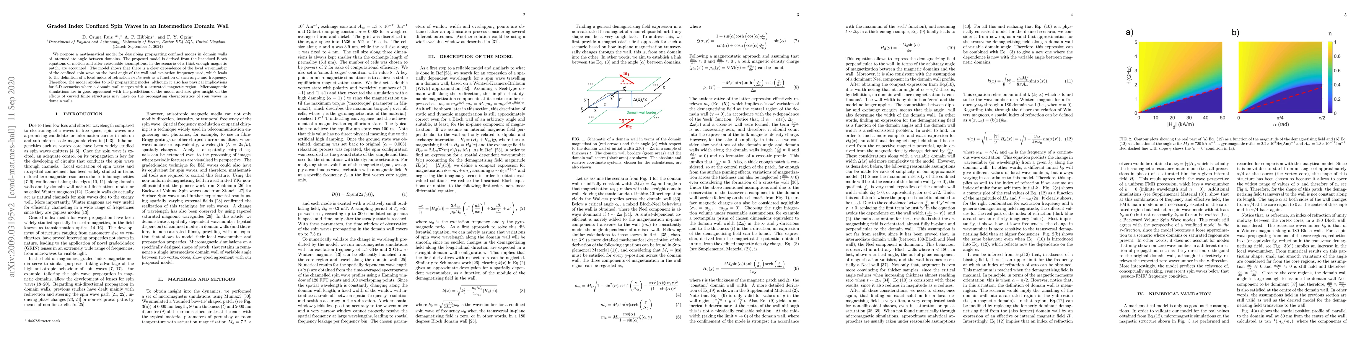 Researchers propose a new model to describe confined spin waves in domain walls with intermediate angles, showing dependence on local angle and frequency that leads to a defined index of refraction.