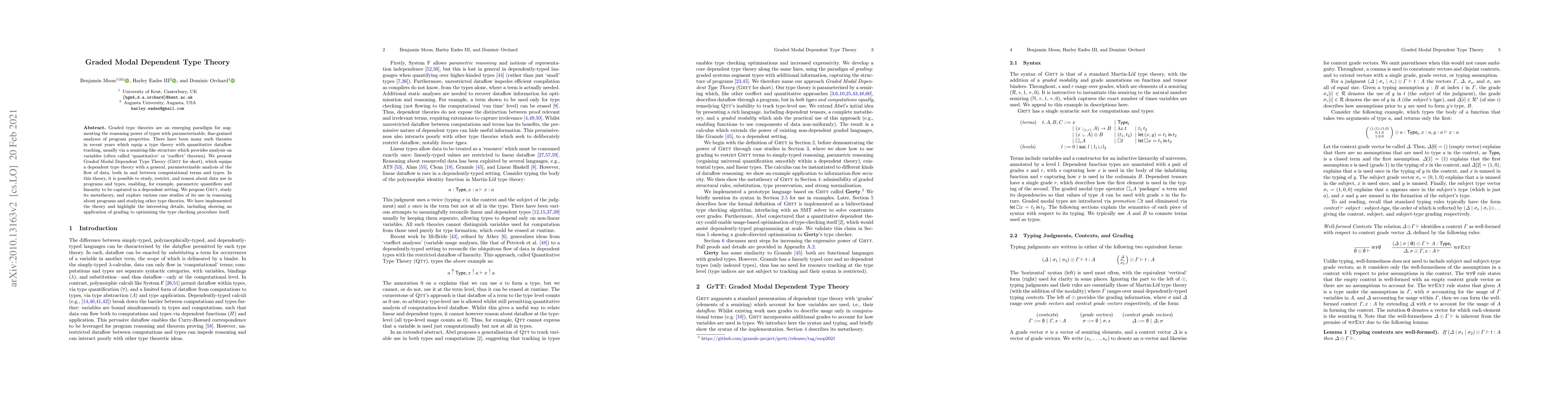 Graded Modal Dependent Type Theory (GrTT) enhances dependent type theory with parameterized, fine-grained analyses of program properties, enabling quantitative dataflow tracking and parametric reasoning. The authors explore its metatheory and demonstrate its practical applications, including optimizing type checking.