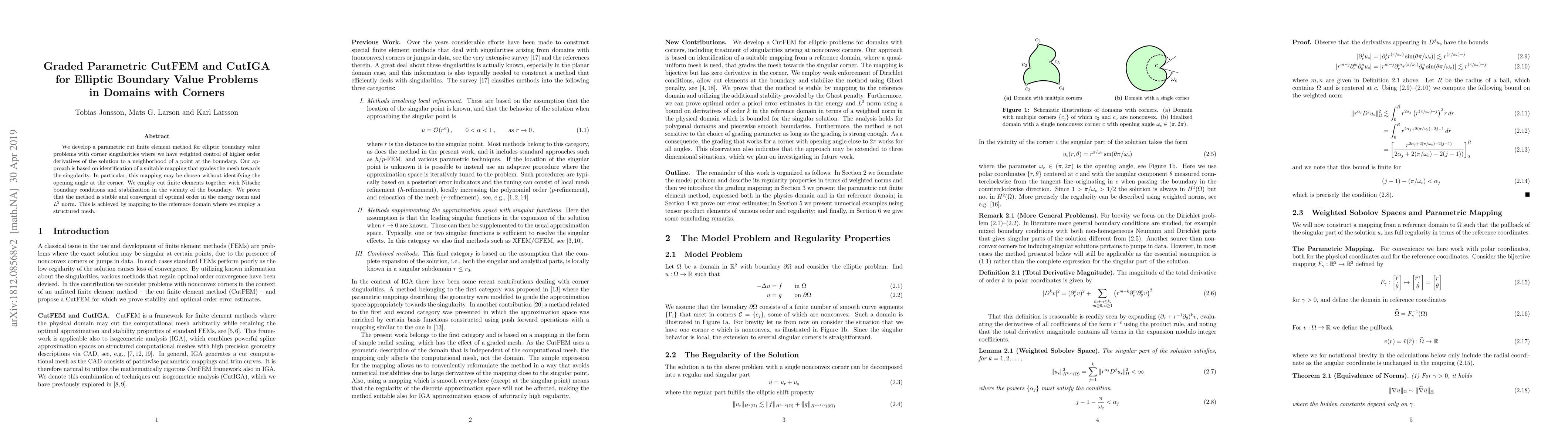 We develop a parametric cut finite element method for elliptic boundary value problems with corner singularities where we have weighted control of higher order derivatives of the solution to a neighborhood of a point at the boundary. Our approach is based on identification of a suitable mapping that grades the mesh towards the singularity. In particular, this mapping may be chosen without identifying the opening angle at the corner. We employ cut finite elements together with Nitsche boundary conditions and stabilization in the vicinity of the boundary. We prove that the method is stable and convergent of optimal order in the energy norm and $L^2$ norm. This is achieved by mapping to the reference domain where we employ a structured mesh.