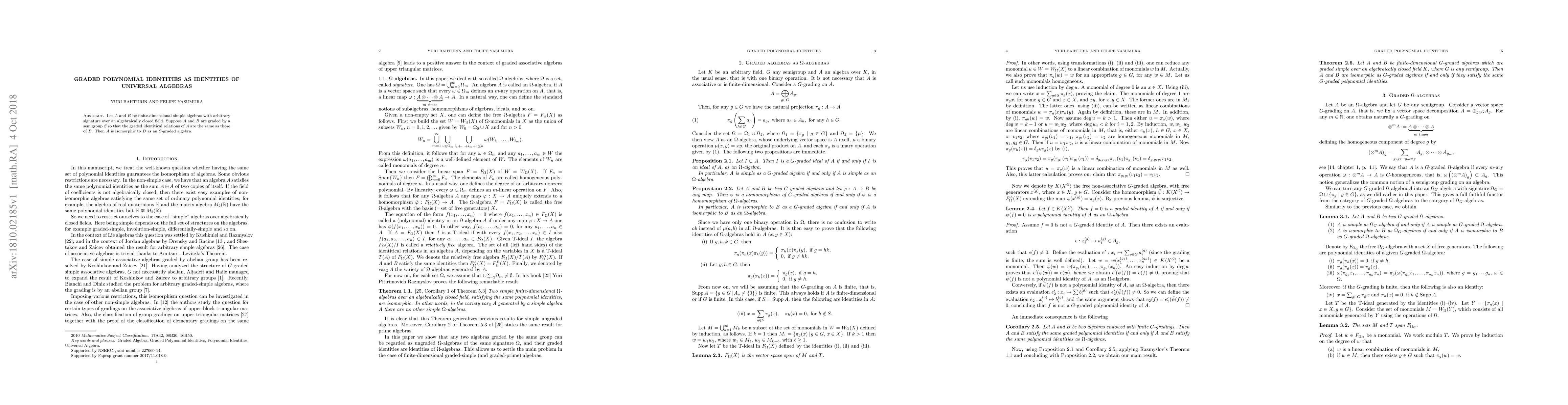 Let $A$ and $B$ be finite-dimensional simple algebras with arbitrary signature over an algebraically closed field. Suppose $A$ and $B$ are graded by a semigroup $S$ so that the graded identitical relations of $A$ are the same as those of $B$. Then $A$ is isomorphic to $B$ as an $S$-graded algebra.