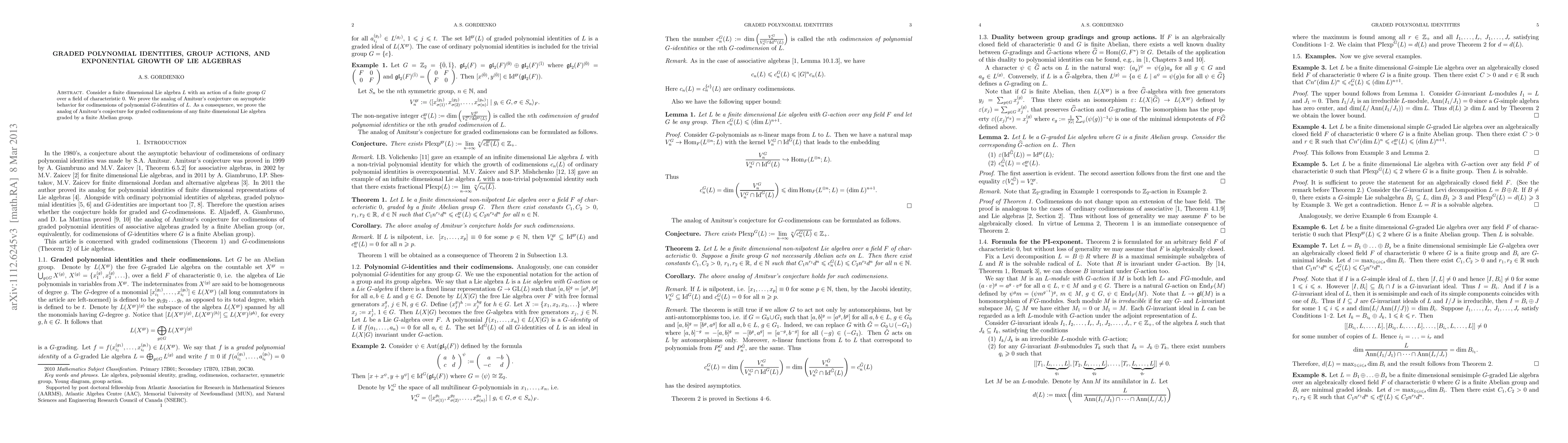 The paper proves the analog of Amitsur's conjecture regarding the asymptotic behavior of codimensions of polynomial group-identities for finite-dimensional Lie algebras with a finite group action. It also establishes the conjecture for graded codimensions in Lie algebras graded by a finite Abelian group.