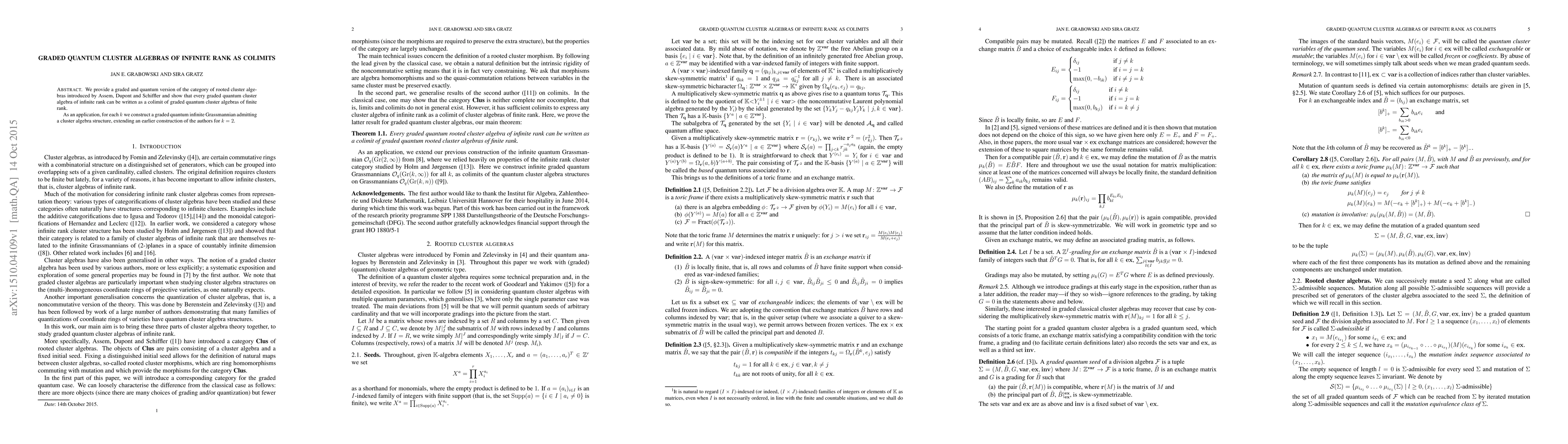We provide a graded and quantum version of the category of rooted cluster algebras introduced by Assem, Dupont and Schiffler and show that every graded quantum cluster algebra of infinite rank can be written as a colimit of graded quantum cluster algebras of finite rank. As an application, for each k we construct a graded quantum infinite Grassmannian admitting a cluster algebra structure, extending an earlier construction of the authors for k=2.