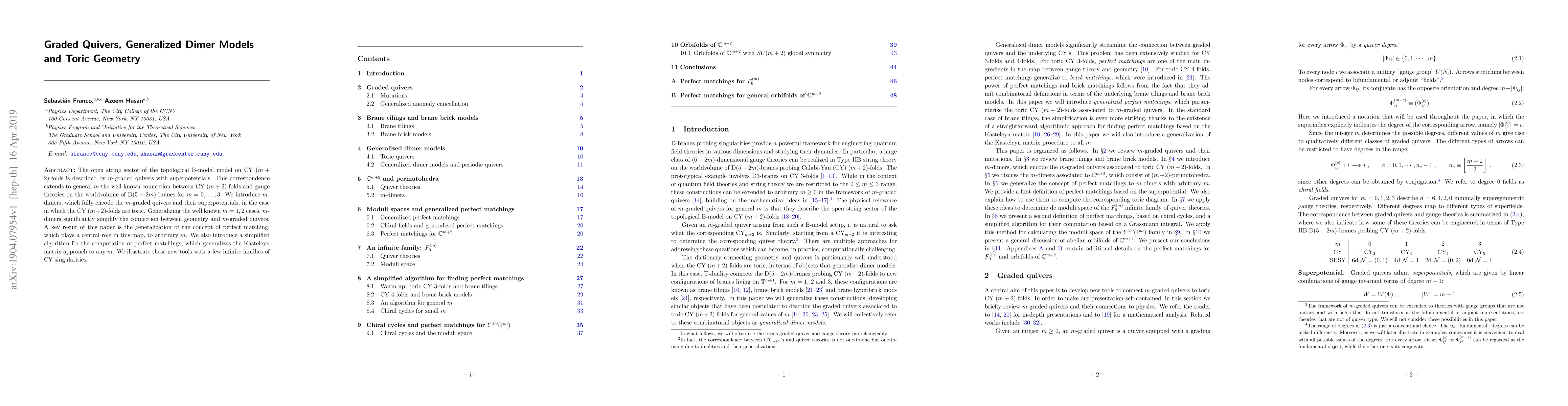Researchers develop a new method to connect CY folds with gauge theories using m-graded quivers and dimer models, simplifying the relationship between geometry and algebraic structures.
