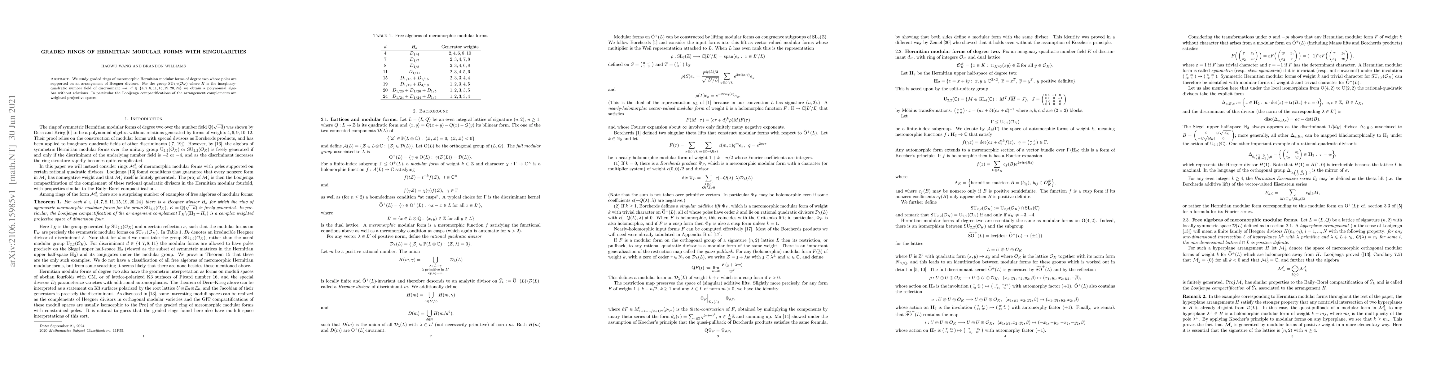 We study graded rings of meromorphic Hermitian modular forms of degree two whose poles are supported on an arrangement of Heegner divisors. For the group $\mathrm{SU}_{2,2}(\mathcal{O}_K)$ where $K$ is the imaginary-quadratic number field of discriminant $-d$, $d \in \{4, 7, 8, 11, 15, 19, 20, 24\}$ we obtain a polynomial algebra without relations. In particular the Looijenga compactifications of the arrangement complements are weighted projective spaces.