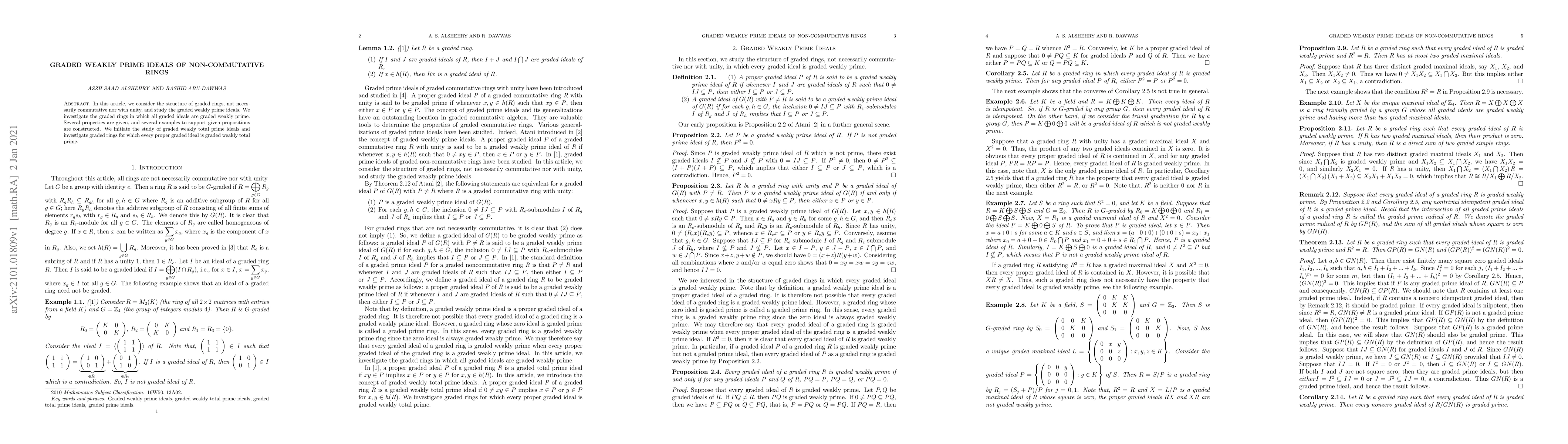 This paper explores the structure of graded rings without unity and investigates graded weakly prime ideals, presenting properties and examples. It also initiates the study of graded weakly total prime ideals, focusing on rings where every proper graded ideal is graded weakly total prime.