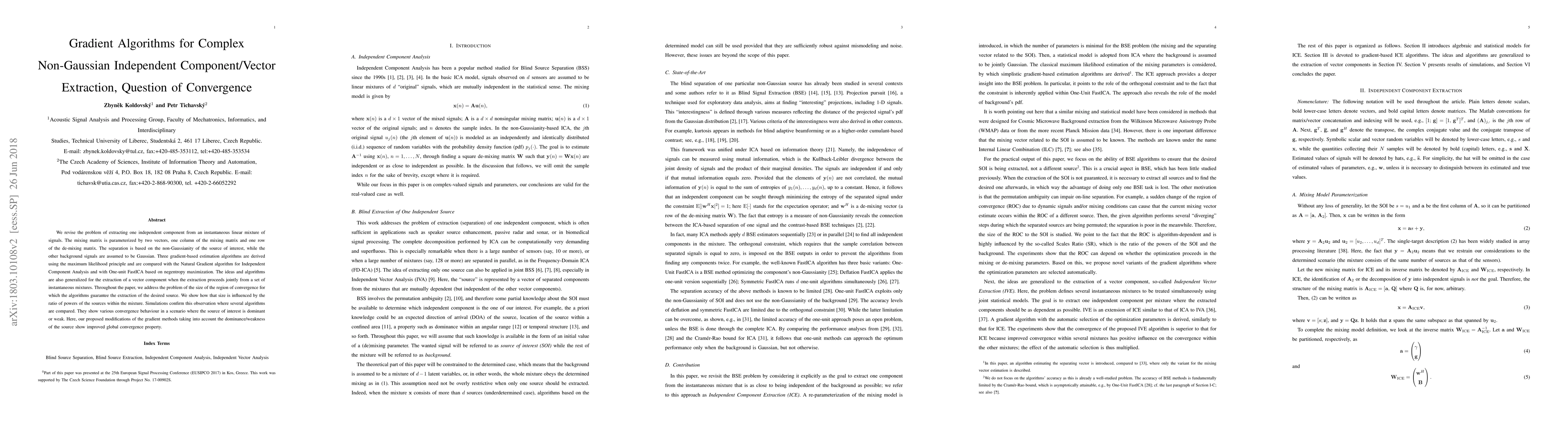 We revise the problem of extracting one independent component from an instantaneous linear mixture of signals. The mixing matrix is parameterized by two vectors, one column of the mixing matrix and one row of the de-mixing matrix. The separation is based on the non-Gaussianity of the source of interest, while the other background signals are assumed to be Gaussian. Three gradient-based estimation algorithms are derived using the maximum likelihood principle and are compared with the Natural Gradient algorithm for Independent Component Analysis and with One-unit FastICA based on negentropy maximization. The ideas and algorithms are also generalized for the extraction of a vector component when the extraction proceeds jointly from a set of instantaneous mixtures. Throughout the paper, we address the problem of the size of the region of convergence for which the algorithms guarantee the extraction of the desired source. We show how that size is influenced by the ratio of powers of the sources within the mixture. Simulations confirm this observation where several algorithms are compared. They show various convergence behavior in a scenario where the source of interest is dominant or weak. Here, our proposed modifications of the gradient methods taking into account the dominance/weakness of the source show improved global convergence property.