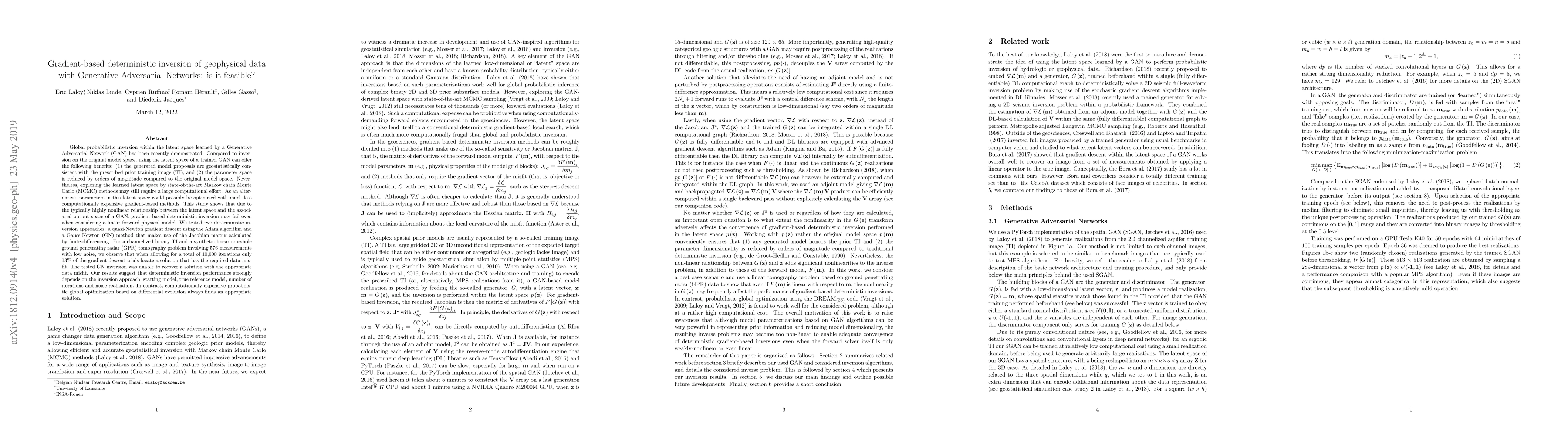 This paper investigates the feasibility of gradient-based deterministic inversion of geophysical data using Generative Adversarial Networks (GANs). Despite the benefits of GAN-based inversion, gradient-based methods like Adam and Gauss-Newton failed to recover appropriate solutions for a synthetic GPR problem, highlighting the challenges posed by the nonlinear relationship between latent and output spaces.