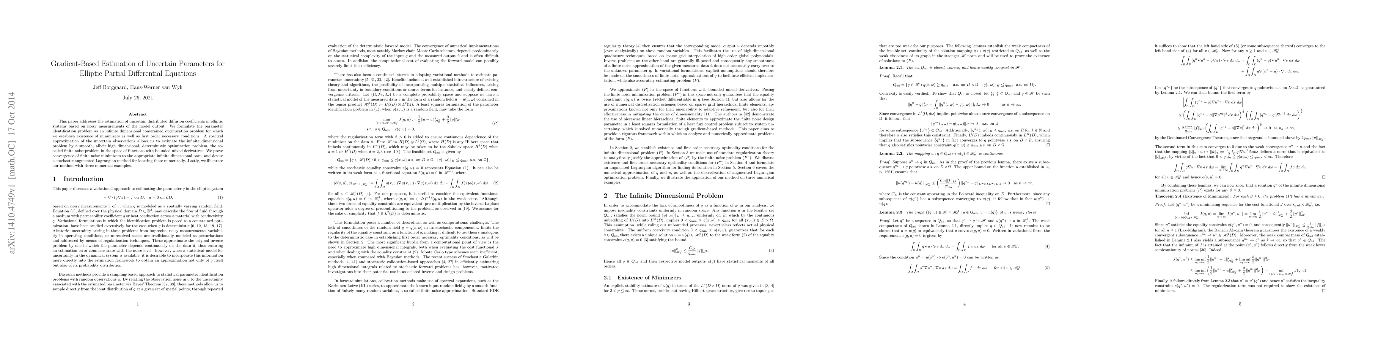 Researchers developed a method to estimate uncertain diffusion coefficients in elliptic systems using noisy measurements of model output. They demonstrated convergence of their numerical approach to the optimal solution.