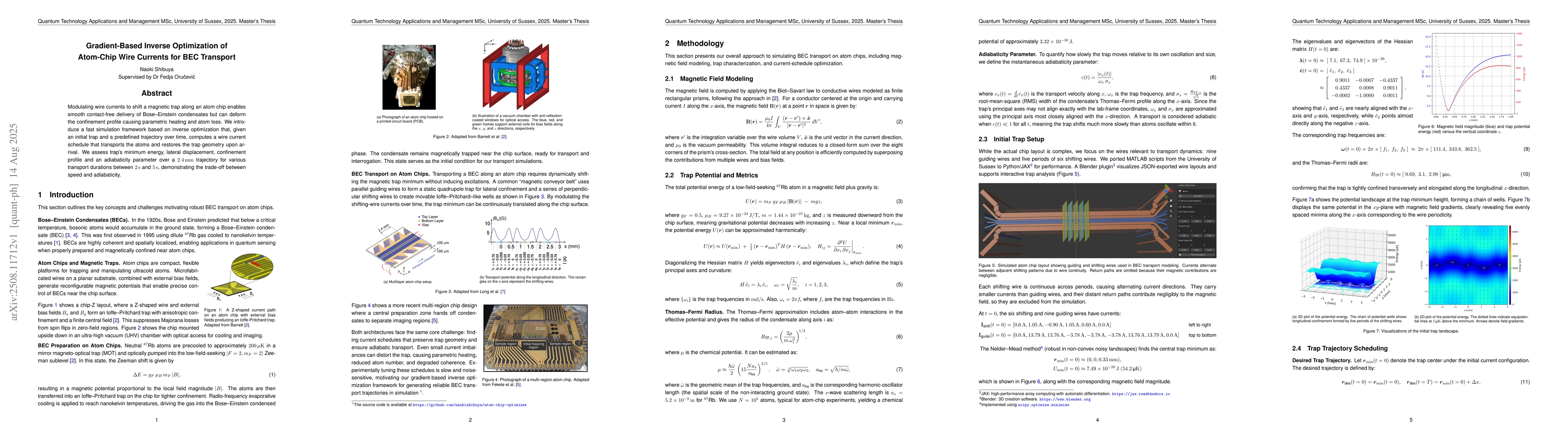 Modulating wire currents to shift a magnetic trap along an atom chip enables smooth contact-free delivery of Bose-Einstein condensates but can deform the confinement profile causing parametric heating and atom loss. We introduce a fast simulation framework based on inverse optimization that, given an initial trap and a predefined trajectory over time, computes a wire current schedule that transports the atoms and restores the trap geometry upon arrival. We assess trap's minimum energy, lateral displacement, confinement profile and an adiabaticity parameter over a 2.4 mm trajectory for various transport durations between 2s and 5s, demonstrating the trade-off between speed and adiabaticity.