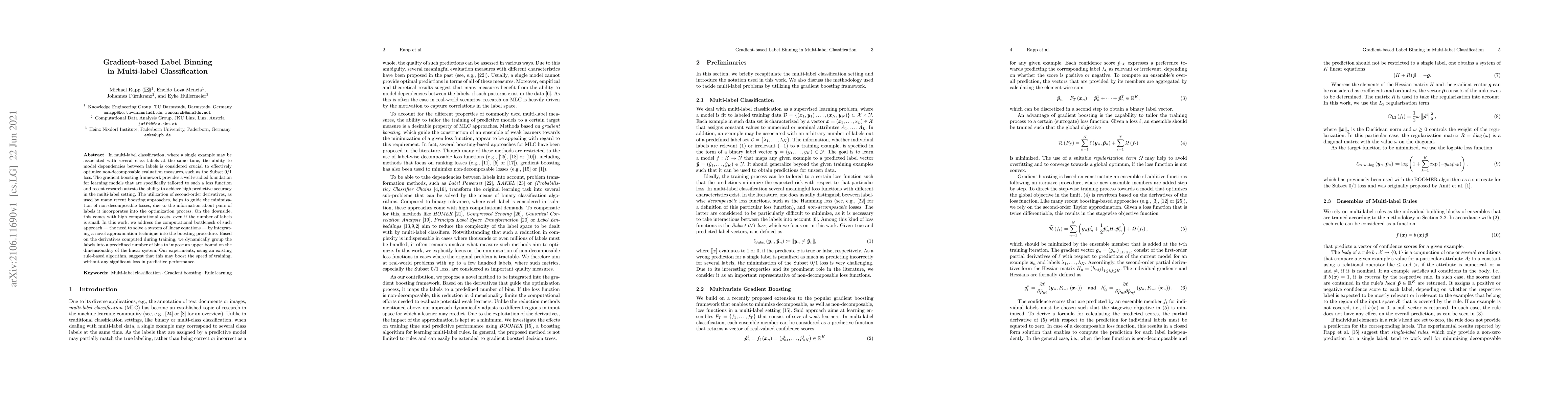 This paper introduces a novel technique to speed up gradient boosting in multi-label classification by dynamically grouping labels into bins, reducing the computational cost of solving linear equations, without compromising predictive performance.