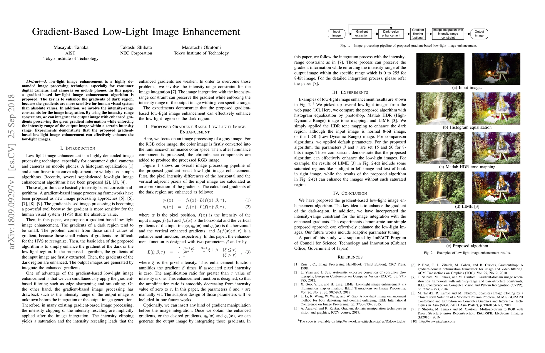 This paper proposes a gradient-based algorithm for enhancing low-light images, focusing on improving the gradients in dark regions to better align with human visual perception. It incorporates intensity-range constraints to maintain the gradient information while ensuring the output image's intensity stays within a specified range, demonstrating effective enhancement in experiments.