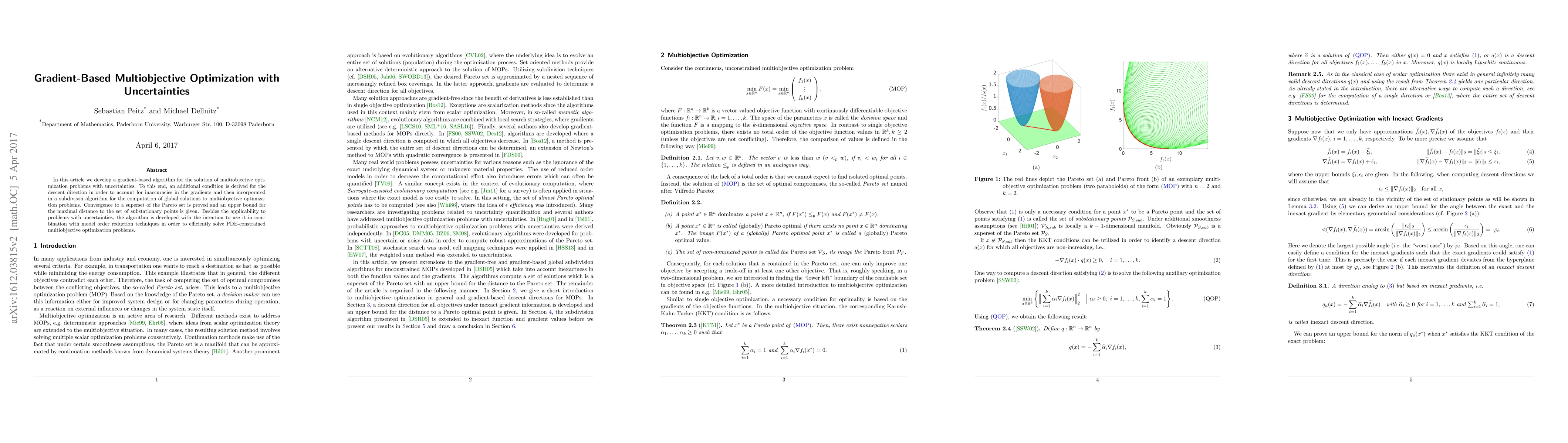 This paper proposes a gradient-based algorithm for solving multiobjective optimization problems with uncertainties, incorporating a new condition for descent direction to handle gradient inaccuracies. The algorithm is shown to converge to a superset of the Pareto set and is intended for use with model order reduction techniques in PDE-constrained optimization.