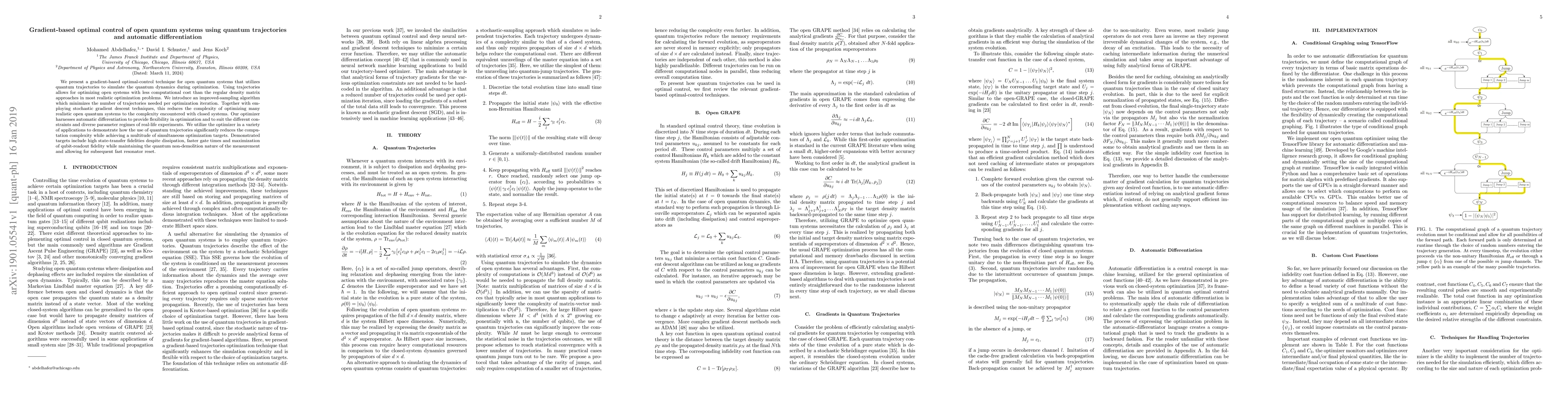 We present a gradient-based optimal-control technique for open quantum systems that utilizes quantum trajectories to simulate the quantum dynamics during optimization. Using trajectories allows for optimizing open systems with less computational cost than the regular density matrix approaches in most realistic optimization problems. We introduce an improved-sampling algorithm which minimizes the number of trajectories needed per optimization iteration. Together with employing stochastic gradient descent techniques, this reduces the complexity of optimizing many realistic open quantum systems to the complexity encountered with closed systems. Our optimizer harnesses automatic differentiation to provide flexibility in optimization and to suit the different constraints and diverse parameter regimes of real-life experiments. We utilize the optimizer in a variety of applications to demonstrate how the use of quantum trajectories significantly reduces the computation complexity while achieving a multitude of simultaneous optimization targets. Demonstrated targets include high state-transfer fidelities despite dissipation, faster gate times and maximization of qubit-readout fidelity while maintaining the quantum non-demolition nature of the measurement and allowing for subsequent fast resonator reset.