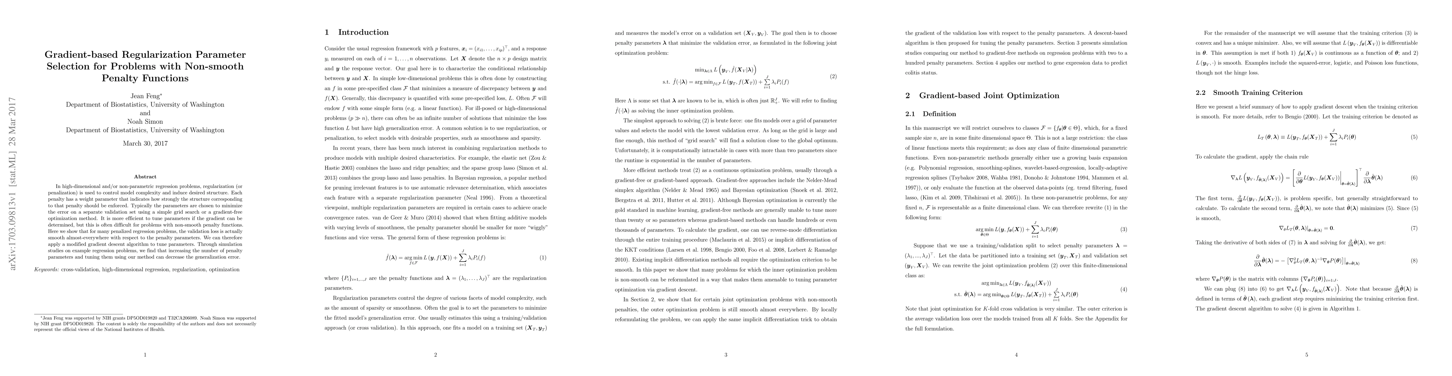 In high-dimensional and/or non-parametric regression problems, regularization (or penalization) is used to control model complexity and induce desired structure. Each penalty has a weight parameter that indicates how strongly the structure corresponding to that penalty should be enforced. Typically the parameters are chosen to minimize the error on a separate validation set using a simple grid search or a gradient-free optimization method. It is more efficient to tune parameters if the gradient can be determined, but this is often difficult for problems with non-smooth penalty functions. Here we show that for many penalized regression problems, the validation loss is actually smooth almost-everywhere with respect to the penalty parameters. We can therefore apply a modified gradient descent algorithm to tune parameters. Through simulation studies on example regression problems, we find that increasing the number of penalty parameters and tuning them using our method can decrease the generalization error.