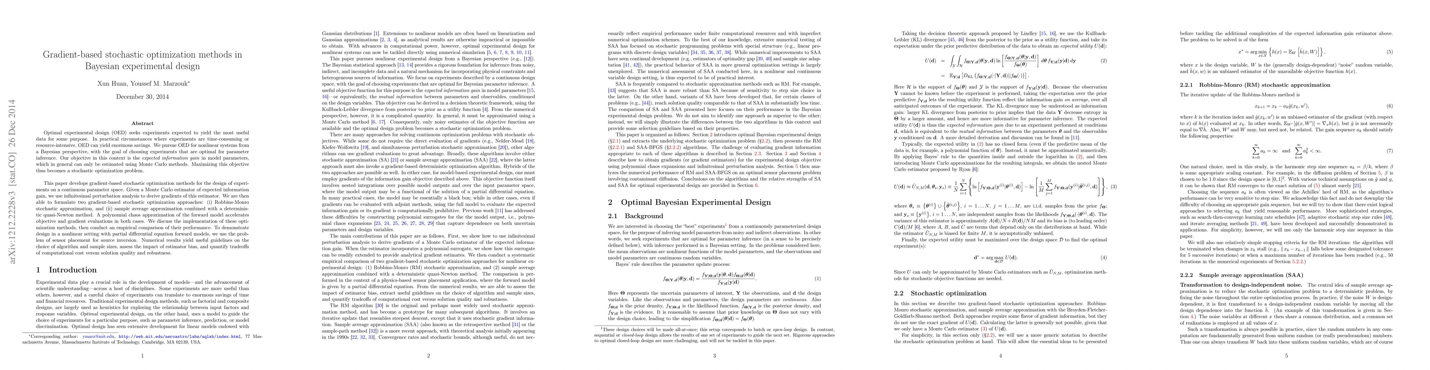 This paper develops gradient-based stochastic optimization methods for Bayesian experimental design in nonlinear systems, focusing on maximizing expected information gain. It proposes two optimization approaches: Robbins-Monro stochastic approximation and sample average approximation with a quasi-Newton method, both accelerated by polynomial chaos.
