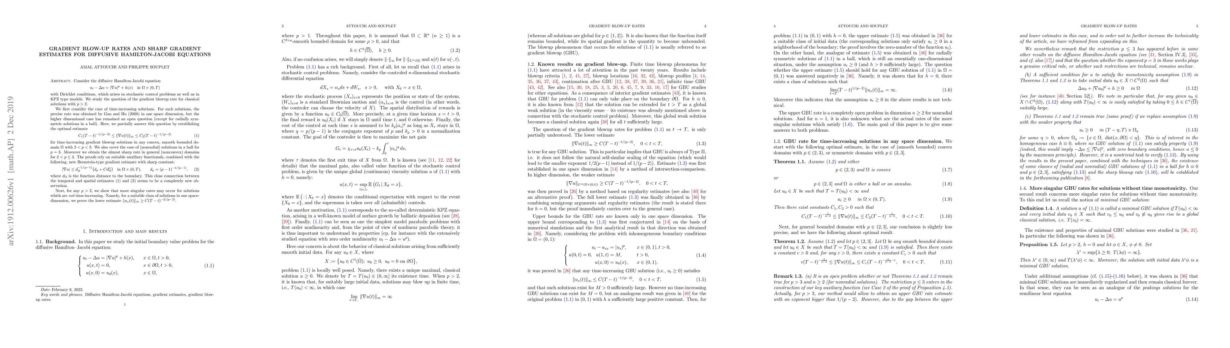 Consider the diffusive Hamilton-Jacobi equation $$u_t-\Delta u=|\nabla u|^p+h(x)\ \ \text{ in } \Omega\times(0,T)$$ with Dirichlet conditions, which arises in stochastic control problems as well as in KPZ type models. We study the question of the gradient blowup rate for classical solutions with $p>2$. We first consider the case of time-increasing solutions. For such solutions, the precise rate was obtained by Guo and Hu (2008) in one space dimension, but the higher dimensional case has remained an open question (except for radially symmetric solutions in a ball). Here, we partially answer this question by establishing the optimal estimate $$C_1(T-t)^{-1/(p-2)}\leq \|\nabla u(t)\|_{\infty} \leq C_2(T-t)^{-1/(p-2)} \tag{1}$$ for time-increasing gradient blowup solutions in any convex, smooth bounded domain $\Omega$ with $2
