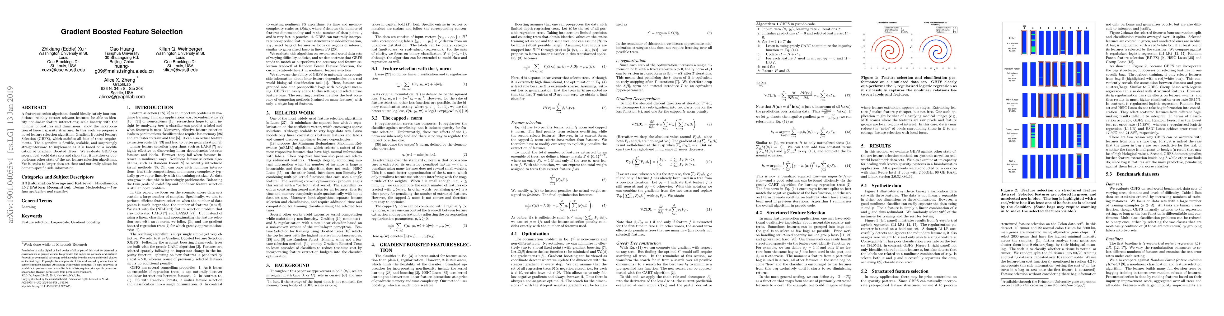 This paper proposes Gradient Boosted Feature Selection (GBFS), a novel algorithm that reliably extracts relevant features, identifies non-linear interactions, scales linearly with feature size, and incorporates known sparsity. GBFS, based on Gradient Boosted Trees, outperforms other feature selection methods on real-world datasets while scaling to larger data sizes.