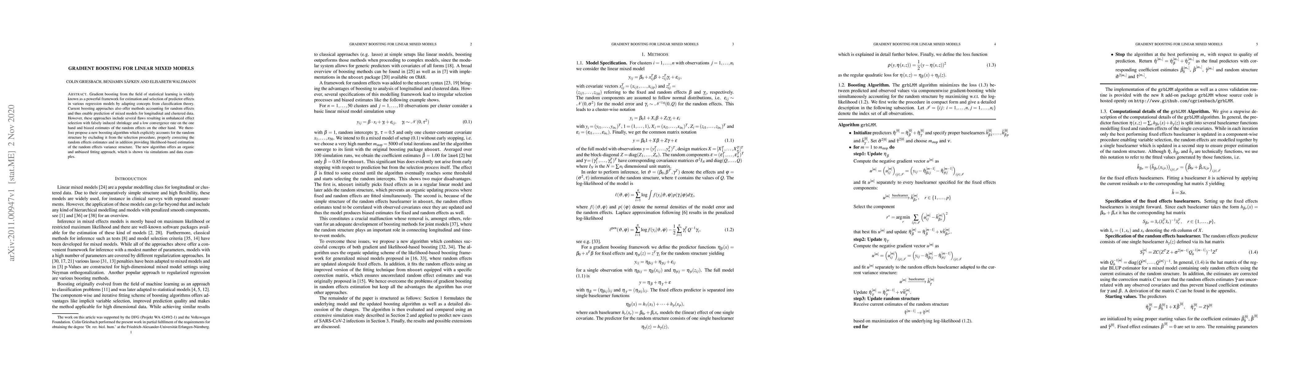 This paper proposes a novel gradient boosting algorithm for linear mixed models that addresses existing flaws in current methods, such as unbalanced effect selection and biased random effects estimates, by explicitly excluding the random structure from the selection procedure and providing likelihood-based estimation of the variance structure. The new algorithm is demonstrated to be unbiased and effective through simulations and real-data examples.