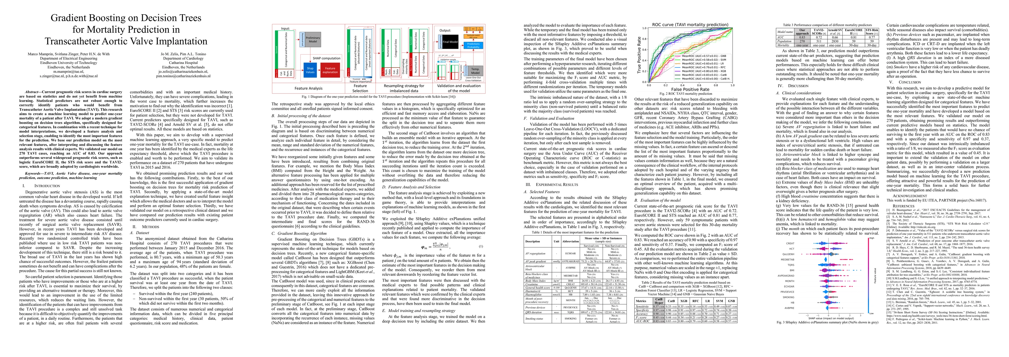 This study develops a gradient boosting on decision trees model to predict one-year mortality post-Transcatheter Aortic Valve Implantation (TAVI), outperforming traditional risk scores. The model, validated on 270 cases, achieved an AUC of 0.83, highlighting its superior predictive accuracy.