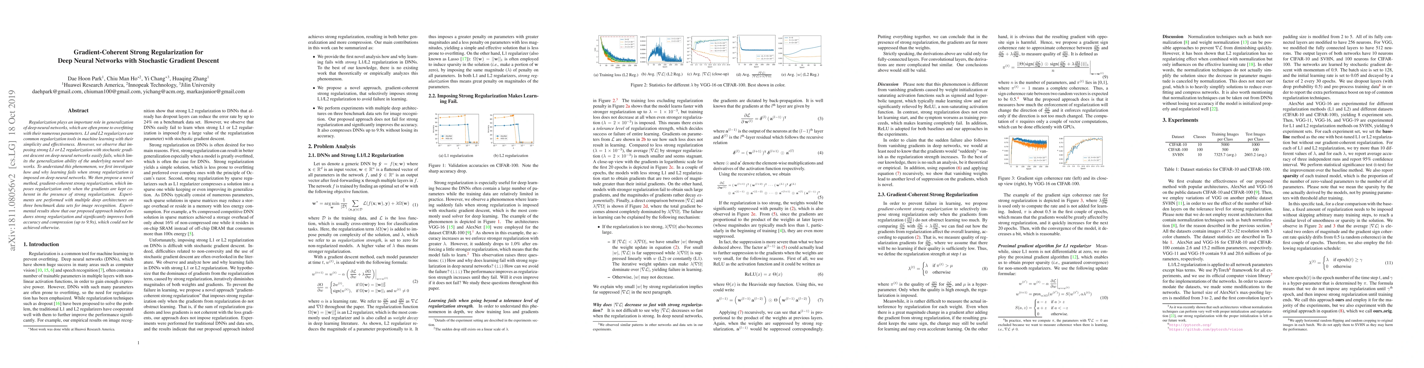 This paper proposes gradient-coherent strong regularization to improve the generalization of deep neural networks by imposing regularization only when gradients remain coherent, addressing the failure of traditional strong L1 or L2 regularization. Experiments on multiple architectures and datasets show significant improvements in accuracy and compression.