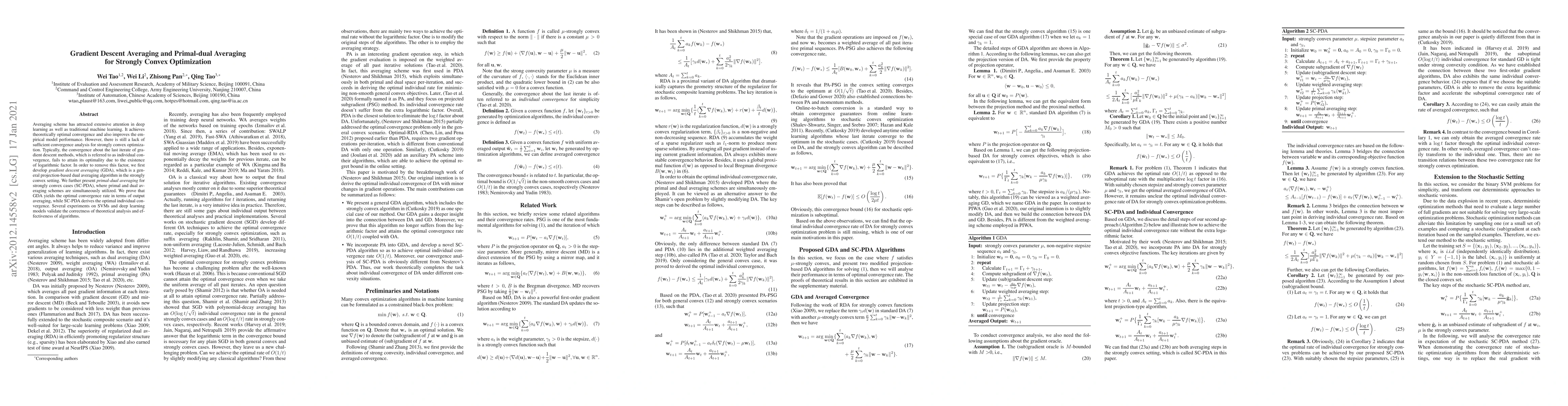This paper develops gradient descent averaging (GDA) and primal-dual averaging (SC-PDA) for strongly convex optimization, achieving optimal convergence rates. Theoretical analysis and empirical experiments on SVMs and deep learning models demonstrate the effectiveness of these methods.