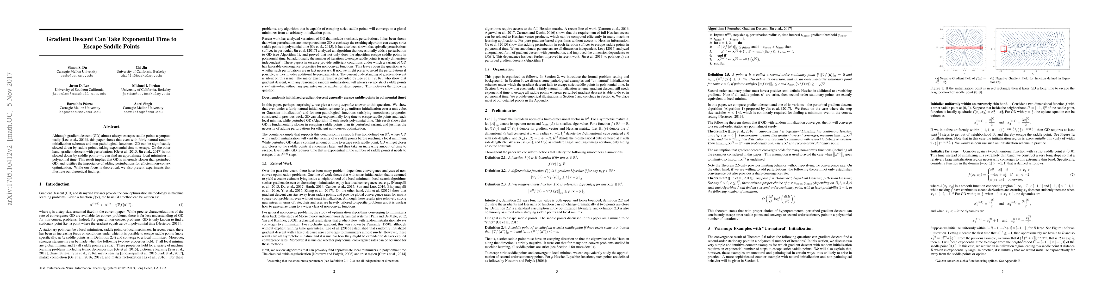 This paper demonstrates that gradient descent can take exponential time to escape saddle points under certain conditions, contrasting with its asymptotic escape behavior. In contrast, gradient descent with perturbations efficiently finds local minimizers in polynomial time, highlighting the importance of perturbations for efficient non-convex optimization.