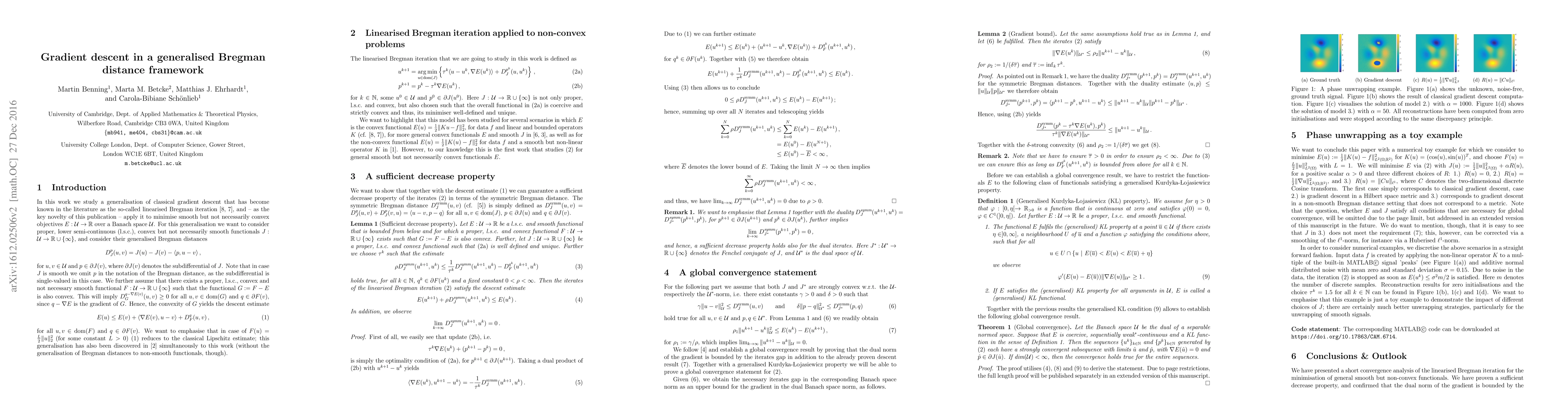 This paper investigates a generalised Bregman distance framework for gradient descent, establishing global convergence under certain assumptions, including the Kurdyka-{Å}ojasiewicz property.