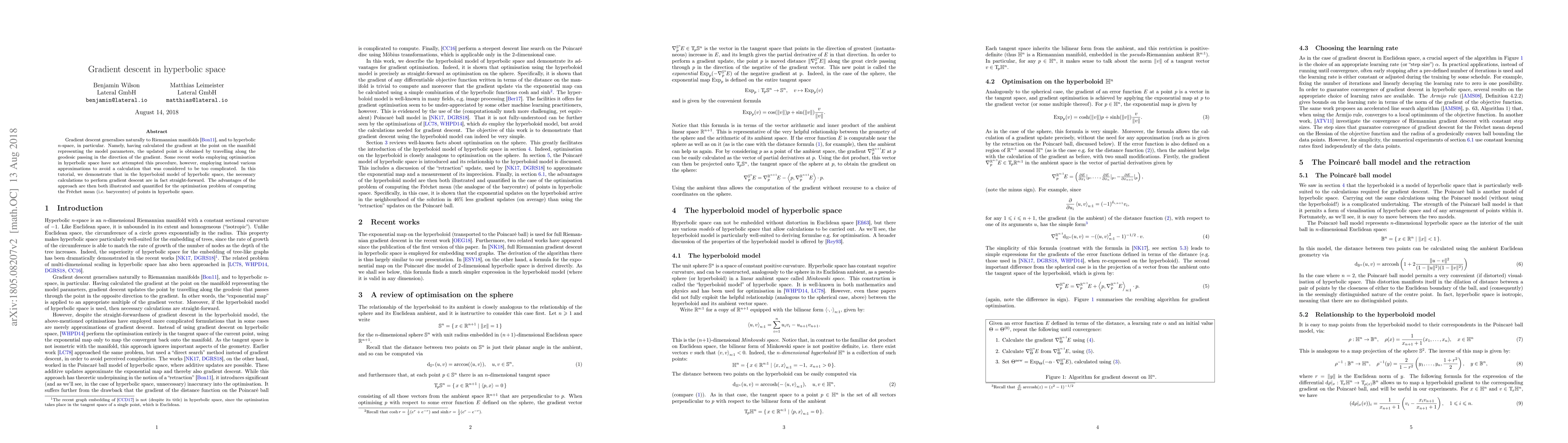 This paper demonstrates that gradient descent in hyperbolic space, specifically in the hyperboloid model, is straightforward and provides a clear method for updating model parameters by following the geodesic in the direction of the gradient. The authors illustrate and quantify the benefits of this approach through the optimization problem of computing the Fréchet mean in hyperbolic space.