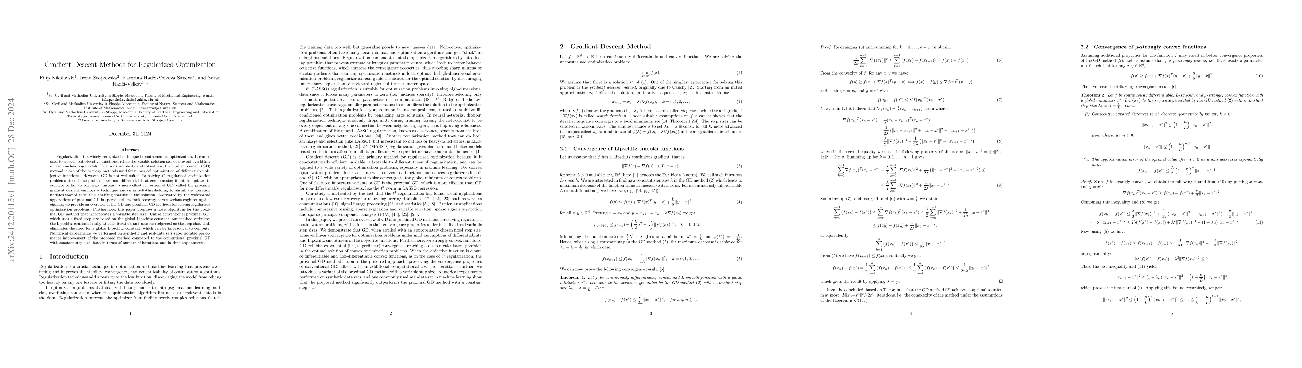 Regularization is a widely recognized technique in mathematical optimization. It can be used to smooth out objective functions, refine the feasible solution set, or prevent overfitting in machine learning models. Due to its simplicity and robustness, the gradient descent (GD) method is one of the primary methods used for numerical optimization of differentiable objective functions. However, GD is not well-suited for solving $\ell^1$ regularized optimization problems since these problems are non-differentiable at zero, causing iteration updates to oscillate or fail to converge. Instead, a more effective version of GD, called the proximal gradient descent employs a technique known as soft-thresholding to shrink the iteration updates toward zero, thus enabling sparsity in the solution. Motivated by the widespread applications of proximal GD in sparse and low-rank recovery across various engineering disciplines, we provide an overview of the GD and proximal GD methods for solving regularized optimization problems. Furthermore, this paper proposes a novel algorithm for the proximal GD method that incorporates a variable step size. Unlike conventional proximal GD, which uses a fixed step size based on the global Lipschitz constant, our method estimates the Lipschitz constant locally at each iteration and uses its reciprocal as the step size. This eliminates the need for a global Lipschitz constant, which can be impractical to compute. Numerical experiments we performed on synthetic and real-data sets show notable performance improvement of the proposed method compared to the conventional proximal GD with constant step size, both in terms of number of iterations and in time requirements.