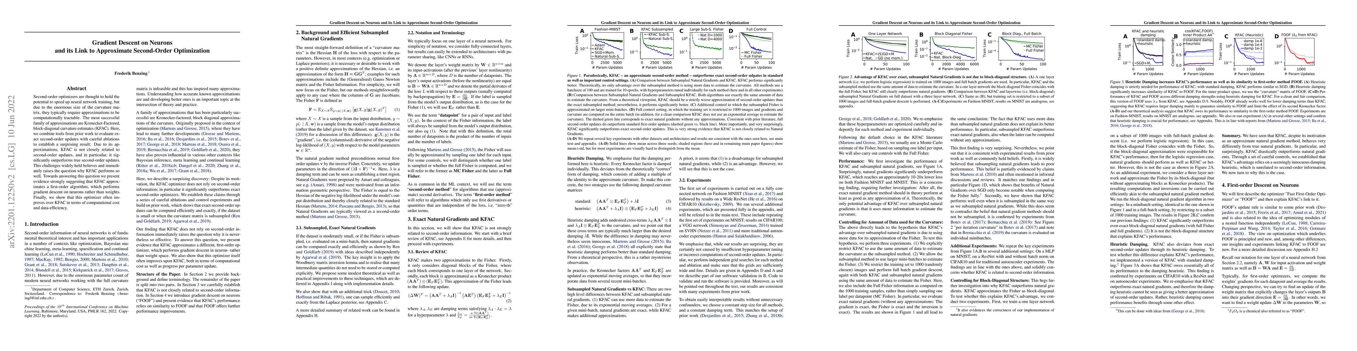 Second-order optimizers are thought to hold the potential to speed up neural network training, but due to the enormous size of the curvature matrix, they typically require approximations to be computationally tractable. The most successful family of approximations are Kronecker-Factored, block-diagonal curvature estimates (KFAC). Here, we combine tools from prior work to evaluate exact second-order updates with careful ablations to establish a surprising result: Due to its approximations, KFAC is not closely related to second-order updates, and in particular, it significantly outperforms true second-order updates. This challenges widely held believes and immediately raises the question why KFAC performs so well. Towards answering this question we present evidence strongly suggesting that KFAC approximates a first-order algorithm, which performs gradient descent on neurons rather than weights. Finally, we show that this optimizer often improves over KFAC in terms of computational cost and data-efficiency.