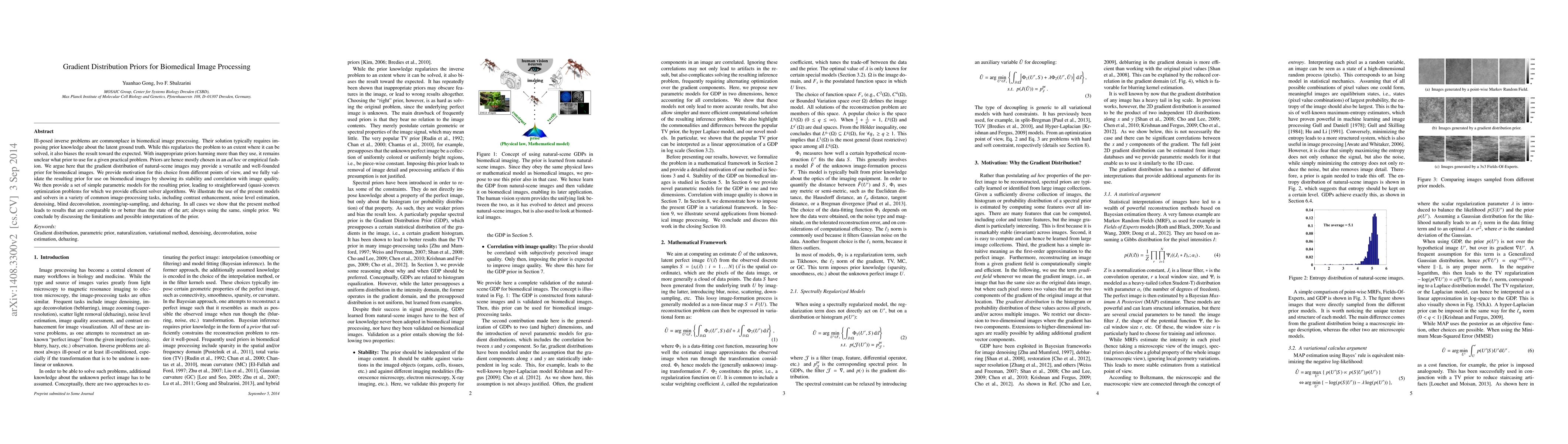 This paper proposes a gradient distribution prior derived from natural-scene images to regularize ill-posed inverse problems in biomedical image processing, demonstrating its effectiveness across various tasks like denoising and deconvolution, while discussing its limitations and potential interpretations.