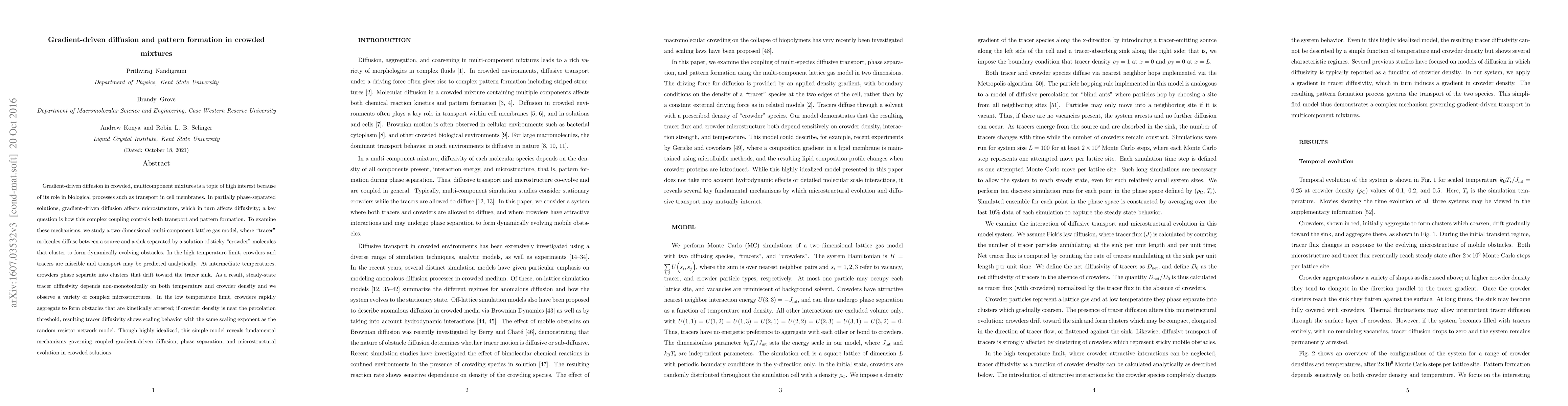 This paper investigates gradient-driven diffusion in crowded, multicomponent mixtures using a two-dimensional lattice gas model, revealing complex interactions between diffusion, phase separation, and microstructure formation that influence transport properties. The study finds that at intermediate temperatures, crowders phase separate and affect diffusivity in a non-monotonic manner, while at low temperatures, crowders form kinetically arrested obstacles, leading to scaling behavior in tracer diffusivity.