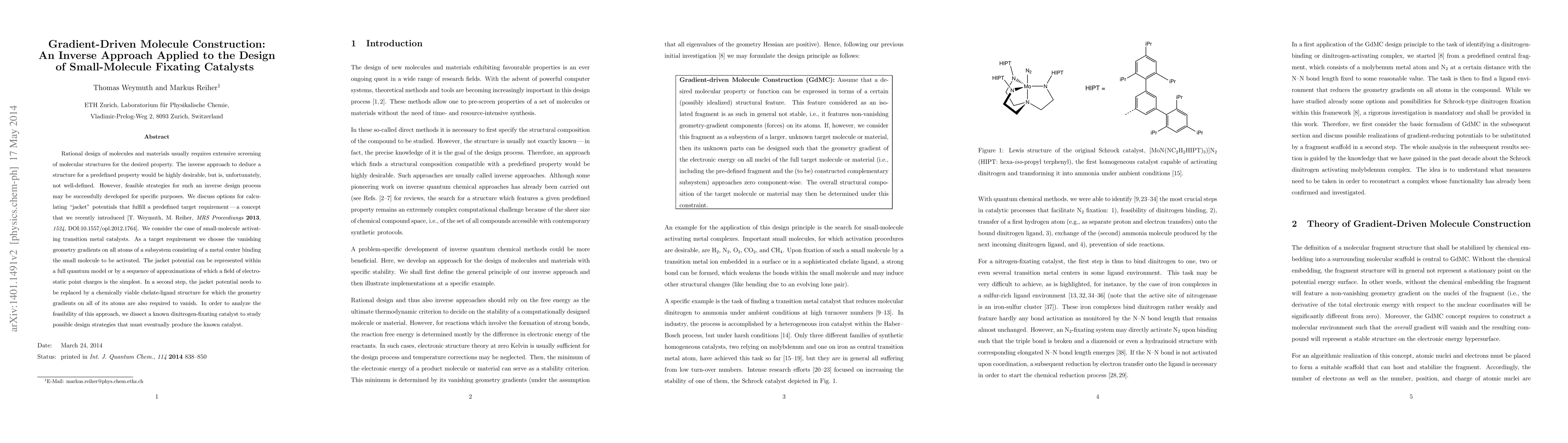 Rational design of molecules and materials usually requires extensive screening of molecular structures for the desired property. The inverse approach to deduce a structure for a predefined property would be highly desirable, but is, unfortunately, not well-defined. However, feasible strategies for such an inverse design process may be successfully developed for specific purposes. We discuss options for calculating 'jacket' potentials that fulfill a predefined target requirement - a concept that we recently introduced [T. Weymuth, M. Reiher, MRS Proceediungs, 2013, 1524, DOI:10.1557/opl.2012.1764]. We consider the case of small-molecule activating transition metal catalysts. As a target requirement we choose the vanishing geometry gradients on all atoms of a subsystem consisting of a metal center binding the small molecule to be activated. The jacket potential can be represented within a full quantum model or by a sequence of approximations of which a field of electrostatic point charges is the simplest. In a second step, the jacket potential needs to be replaced by a chemically viable chelate-ligand structure for which the geometry gradients on all of its atoms are also required to vanish. In order to analyze the feasibility of this approach, we dissect a known dinitrogen-fixating catalyst to study possible design strategies that must eventually produce the known catalyst.
