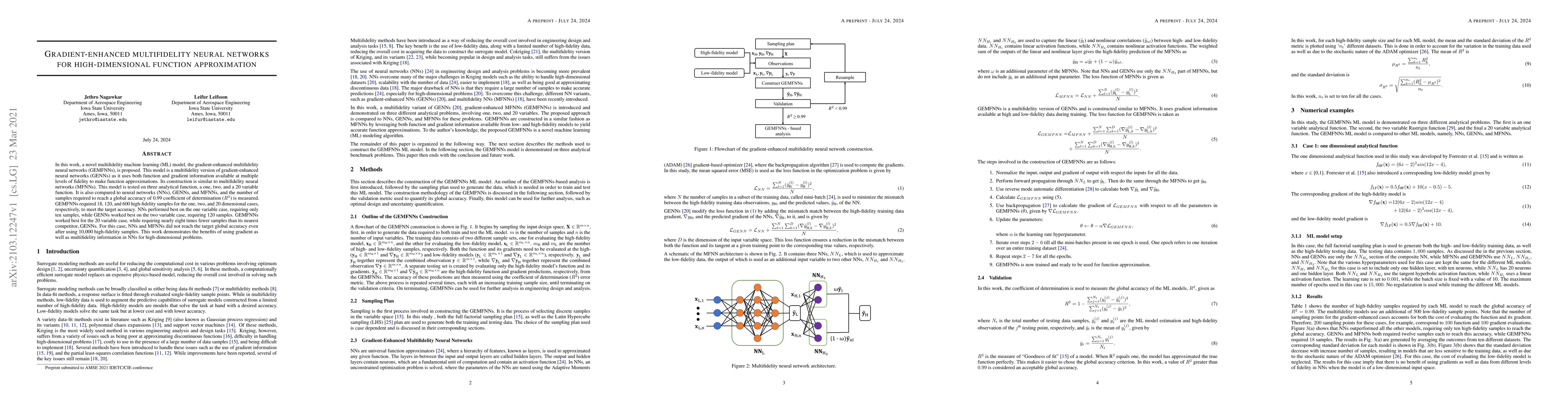 This paper proposes gradient-enhanced multifidelity neural networks (GEMFNNs) that utilize both function and gradient information at multiple fidelity levels for high-dimensional function approximation. GEMFNNs outperform other neural network models in terms of sample efficiency, especially for high-dimensional problems.