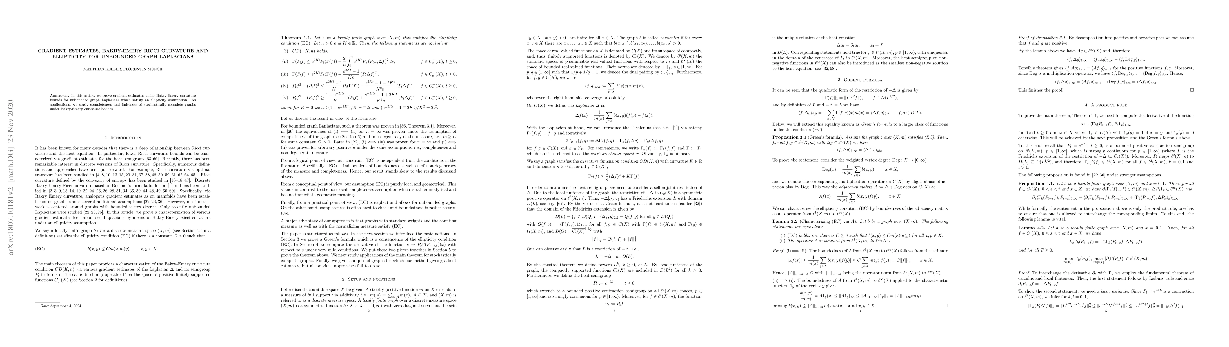 This paper establishes gradient estimates for unbounded graph Laplacians under Bakry-Emery curvature conditions, and uses these to investigate the completeness and finiteness of stochastically complete graphs with such curvature bounds.