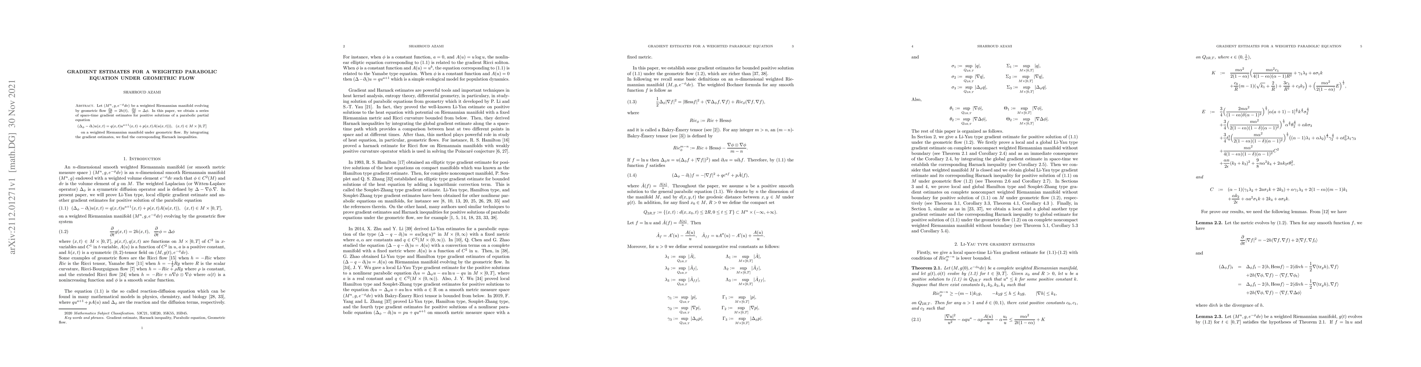 This paper derives space-time gradient estimates for positive solutions of a weighted parabolic partial differential equation under geometric flow on a Riemannian manifold. The findings lead to corresponding Harnack inequalities through integration of these gradient estimates.