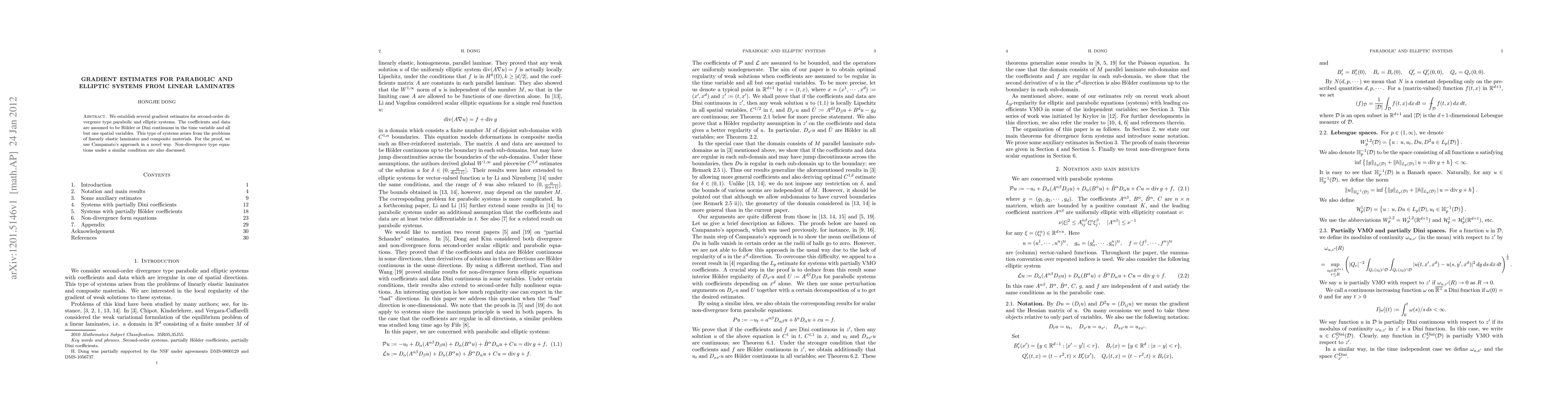 We establish several gradient estimates for second-order divergence type parabolic and elliptic systems. The coefficients and data are assumed to be H\"older or Dini continuous in the time variable and all but one spatial variables. This type of systems arises from the problems of linearly elastic laminates and composite materials. For the proof, we use Campanato's approach in a novel way. Non-divergence type equations under a similar condition are also discussed.