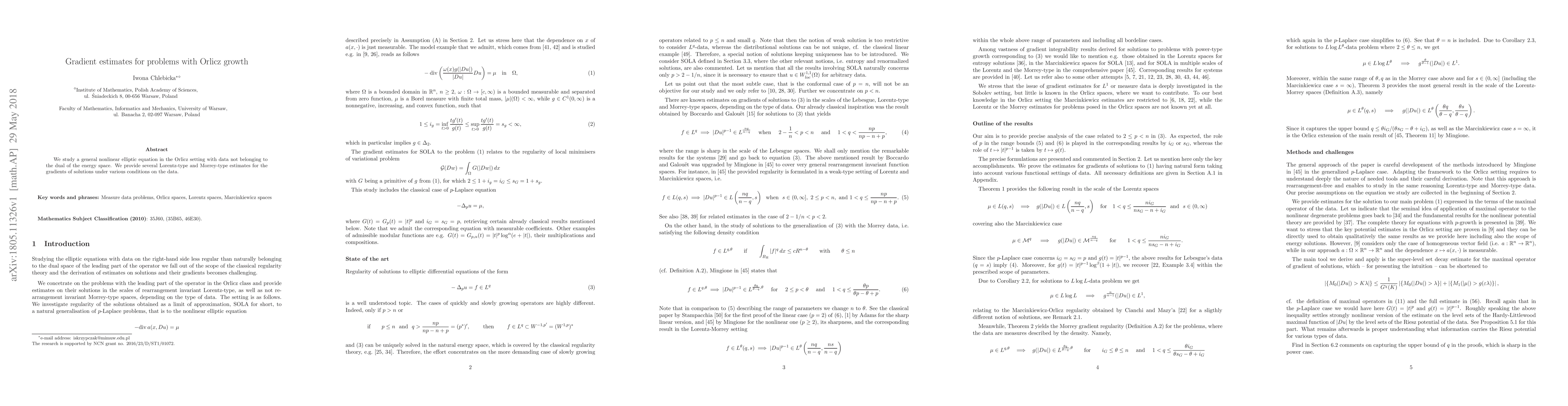 Summary: This paper investigates a nonlinear elliptic equation in the Orlicz setting, offering Lorentz-type and Morrey-type gradient estimates for solutions under diverse data conditions, extending beyond the dual of the energy space.